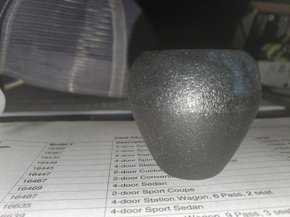 "FWIW that's the superseded 357703 knob- it has a smaller top surface- about the size of a quarter. The correct knob for 72-3 is the 6262364 knob that is so hard to find. It's top surface is larger- a bit larger than the size of a half dollar. Pictured is the 6262364" |