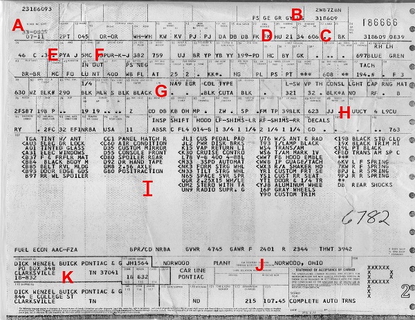 Yeah, T93 is black tail light treatment on a 1978 Trans Am and the smoked tail light treatment on the '79. Y90 Custom trim is also a Firebird/Trans Am interior option. This is a fraudulent attempt at documenting this car as an L78 using a 2nd Gen Firebird build sheet as L78 was also used to refer to a Pontiac 400 in the 1970s F-body Pontiac line.