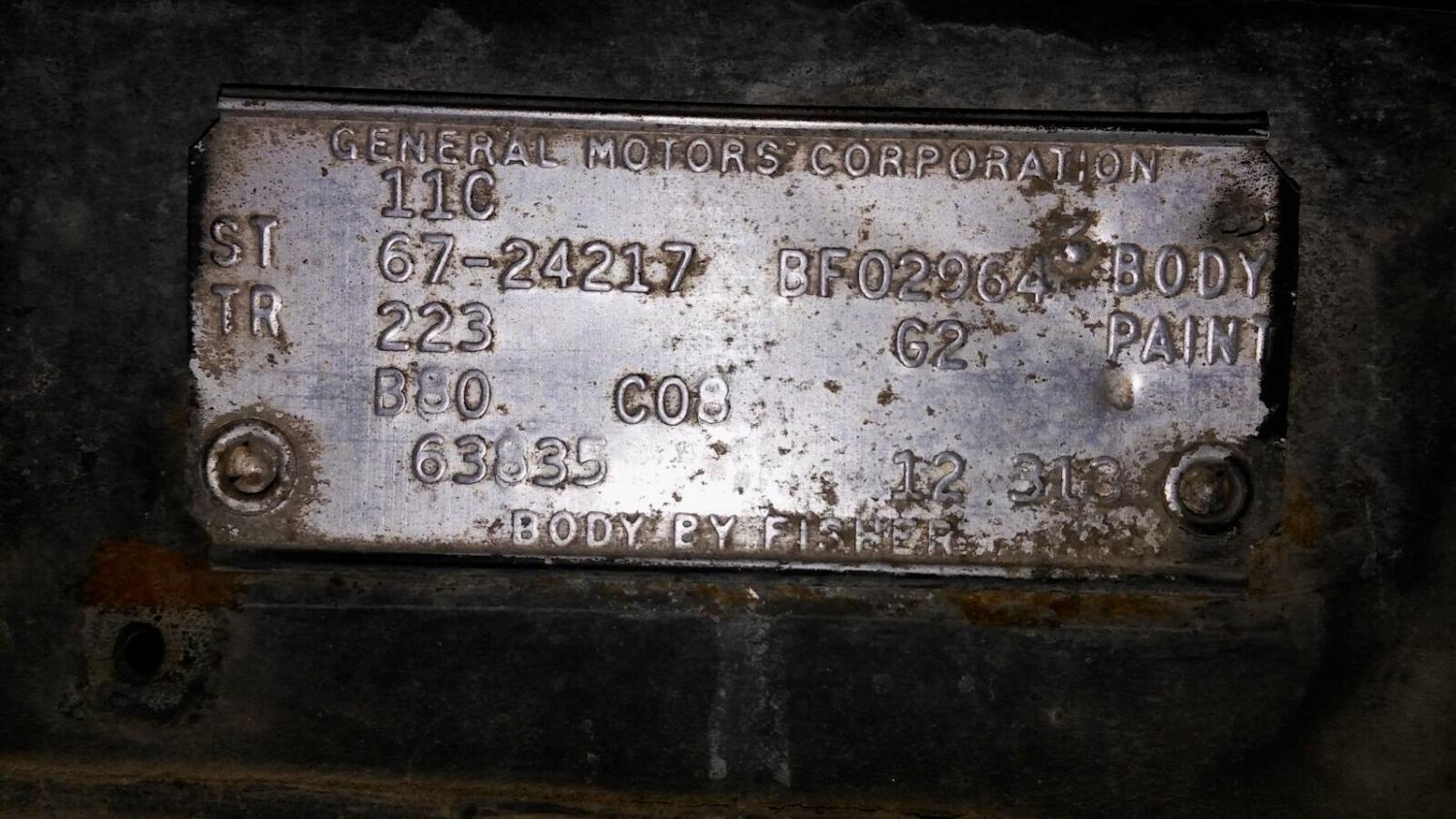 1967 YR = R/A 4 Spd. A.I.R. Third line down on build chart. The most important “born with” component is still there, the numbers matching engine. |