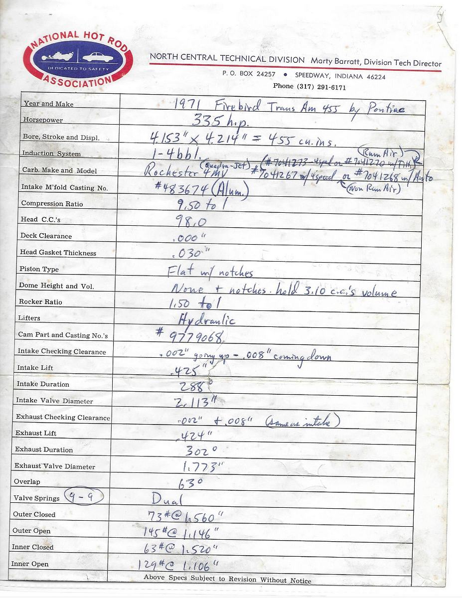 #1: About two years after Wayne purchased it, and right about the time he was converting it into a drag car, Wayne was contacted by someone from Forbes Motors, the Pontiac dealer in Waterloo. They had a blue 1971 Trans Am in the service department that had been towed in due to an engine failure. The engine was torn down and Pontiac had denied the warranty claim citing owner negligence for failing to maintain the oil level. The owner, who had financed the car through GM, was not happy and walked away from the car. The people at Forbes Motors asked Wayne if he wanted to buy the car as-is.