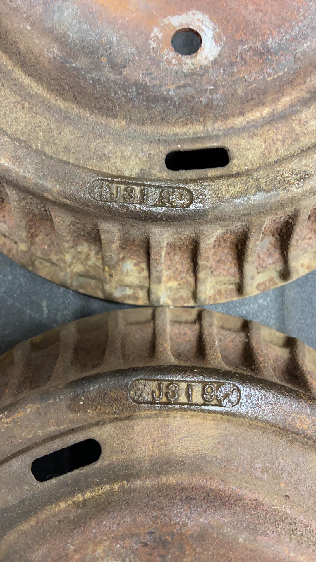 Date code of J 31 9 (October 31 1969) Will need a good sand blast and possibly a surface machining inside the brake contact to clean them up but lots of meat left that should last a life time with good brake shoes. Came off a 1970 Chevelle but may fit other models. $250 plus $40 Shipping within USA Paypal "Friends" in USD only.