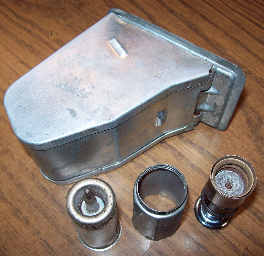 Ashtray has M-IA28855-l, IA28854 and IA28853-M stamped on outside metal. Inside has some surface rust that will easily go away with evapo-rust or vinegar. Lighter with inserts are in excellent condition. Package deal of $80 plus $8.68 Shipping, Paypal "Friends or Gift"