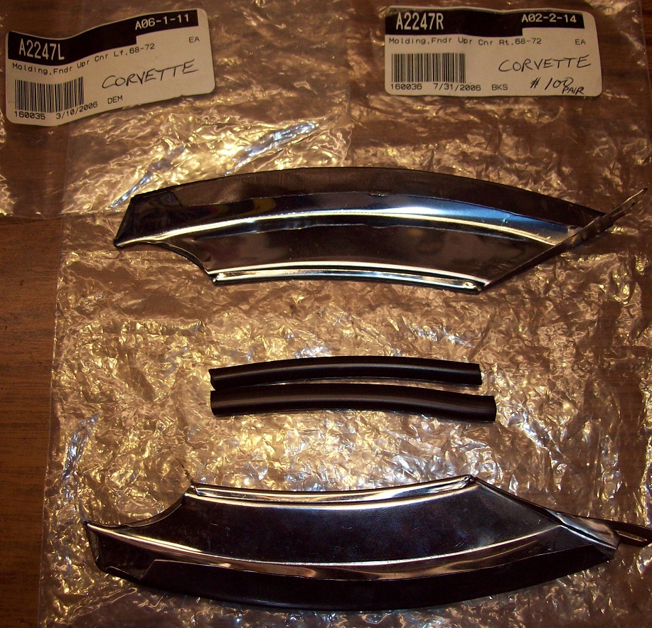 |  NEW 1968 to 1972 Corvette Upper Fender Moldings Wiper Dr Extensions