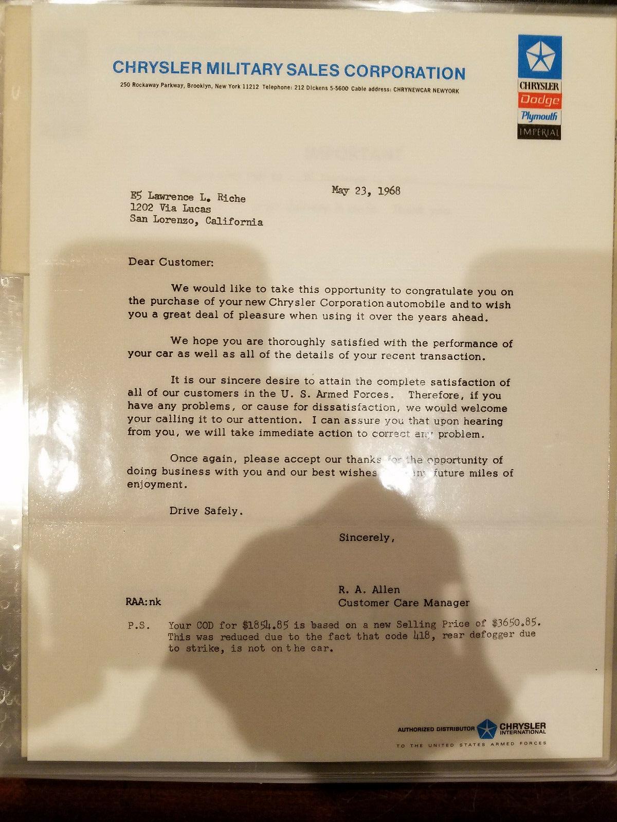 This is a neat one. 1 of 359 built. All the original sales paperwork from Viet Nam order. When you google the original owner's name E5 Lawrence L. Riche you get some interesting historical results.