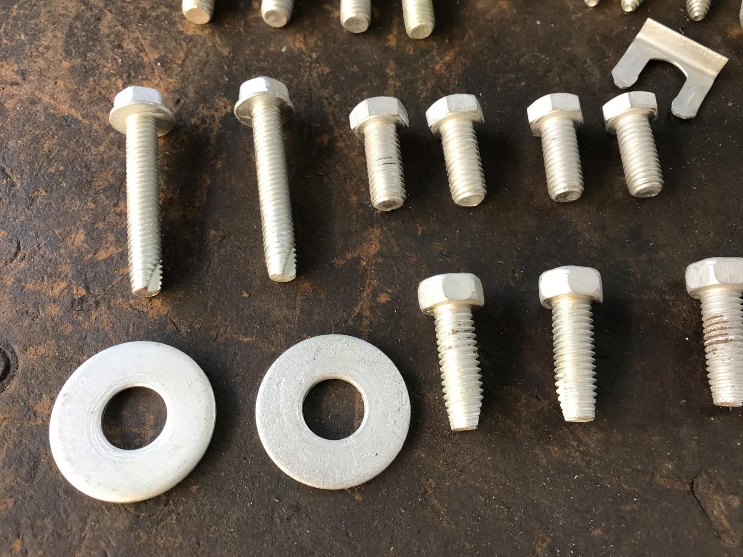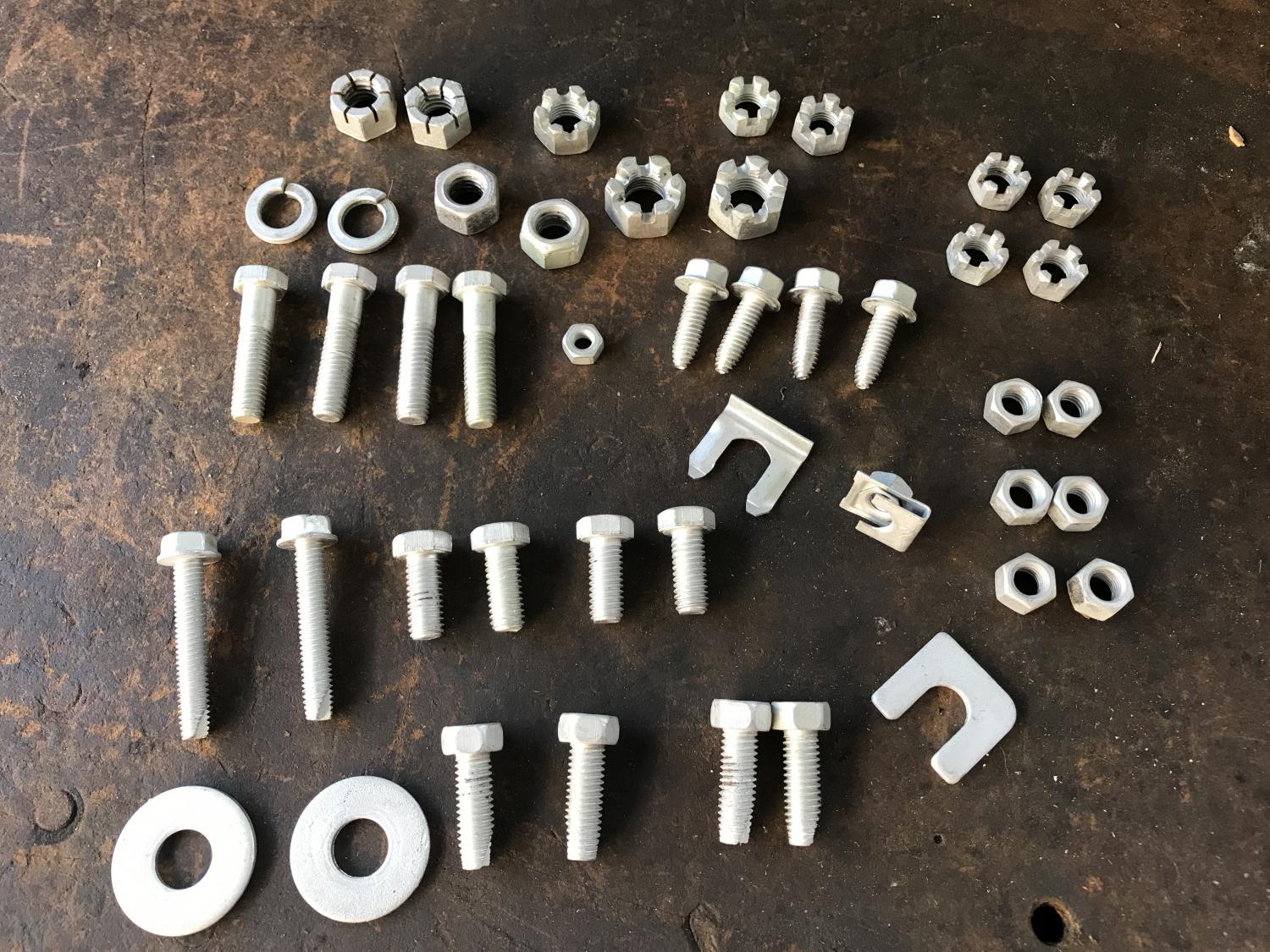 EVERYTHING SHOWN SOLD Hi Gang, I recently found a restorer's lot of hardware that was recently white cadmium / cad plated. prices as directly below and photos further below. upper control arm dog bone / end hardware - concave washers and fine thread RSC head marking / marked bolts with lock / split washers. $40 alignment shims - various widths, 10 thick, 2 thin, 12 total with maker's mark. $40 original caliper bolts with the S stamping - for Stant I believe, with original shims / sliders $40 end link hardware - bolts and washers (two sizes) and two correct nuts and sleeves - one pair mushroomed a bit and one pair of bolts grooved from being loose I think. $20 control arm hardware - lower bumpers with nuts and retained nut clips and ball joint retainers. $30 sway bar bushing retainers - original assembly line pair with "fingers" SOLD the one pair without is still available. $20 miscellaneous hardware, nuts & bolts as shown. $40 This plating is not cheap. $125 if you want everything, but you have to be first to ask, before anything else is sold. Package price will decrease as items are sold of course. Cheers all, Anthony Last edited by AnthonyS; 08-22-2021 at 11:32 PM. Reason: update listing |