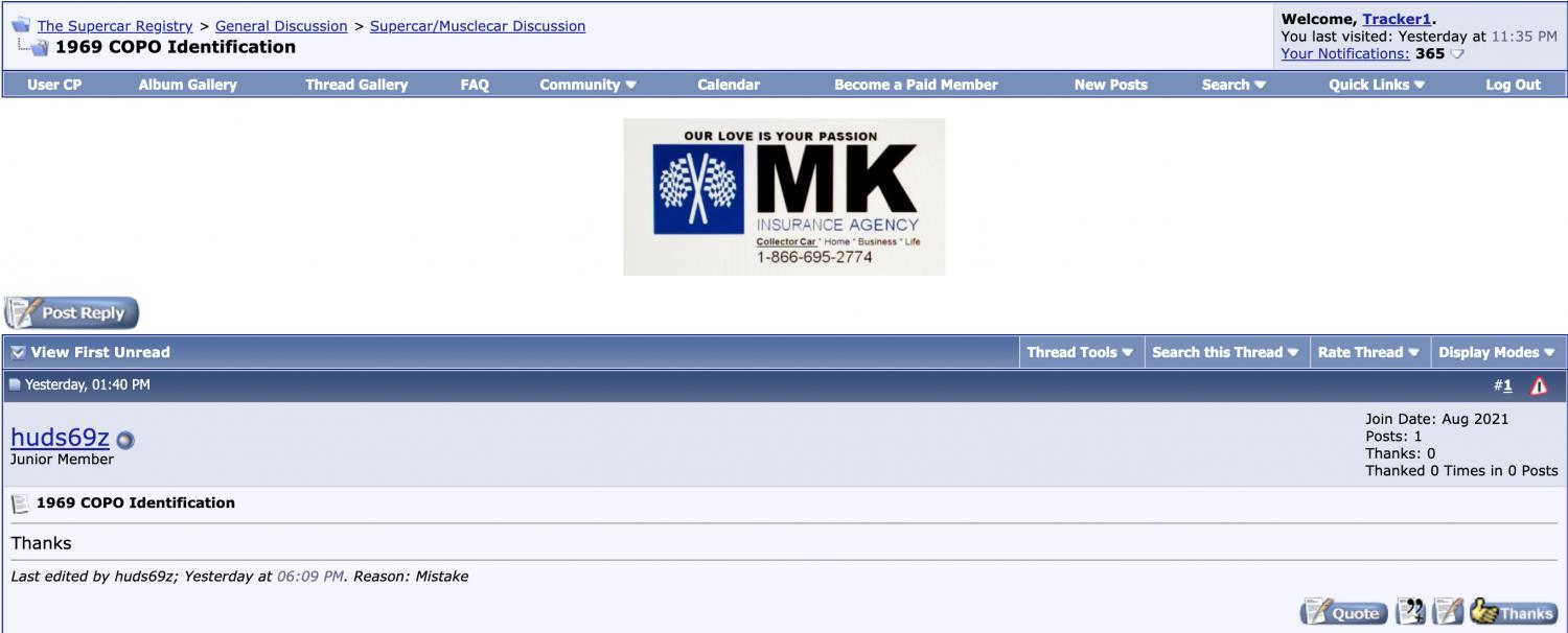 Dedicated to the Promotion and Preservation of American Muscle Cars, Dealer built Supercars and COPO cars. |