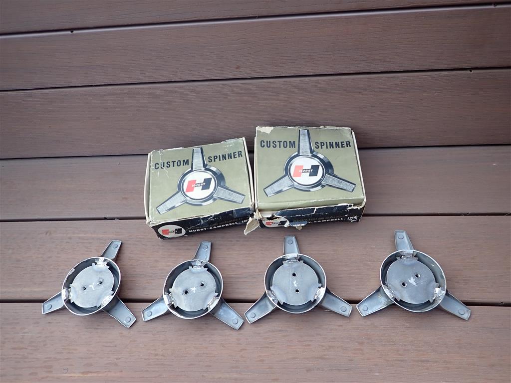 I was at a swapmeet today and a reseller I deal with had bought these caps earlier in the day at the swapmeet. I was picking up some other parts from him and saw these on his trailer. We talked about them and I told him I thought they were for Hurst wheels but I was not certain exactly what they were. I ended up buying them because I thought they were really cool and likely had value if they were what I thought they were. I later found out the guy I bought them from had asked a local Pontiac collector what they were and had not heard back from him before I bought them. The collector has a 65 GTO with Hurst wheels and wants to buy them. I want to be fair with him but I really have no idea what they are worth. I could put them on Ebay and have him bid on them but think that would be a bit uncouth. Can anybody familiar with these wheels/caps give me an idea of what these are worth? These are New Old Stock in the original boxes as shown. Any opinions are welcomed and appreciated. Thank you, Jason |