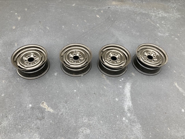 14 x 6 JJ Code GM Steel Wheels. These are 4 Flawless Take Offs from a new car. They are a Dark OLIVE GREEN COLOR.