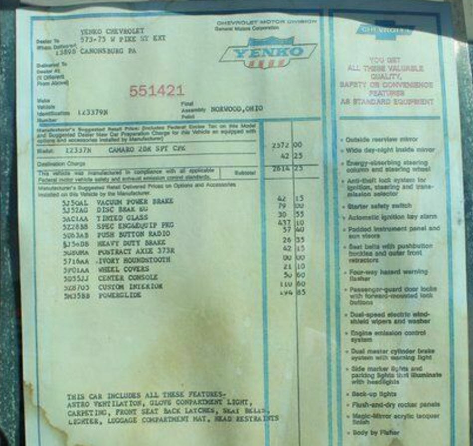 Seen on Yenko clone 123379N551421 https://www.ebay.com/itm/20365871137...QAAOSwf-thb8j9
