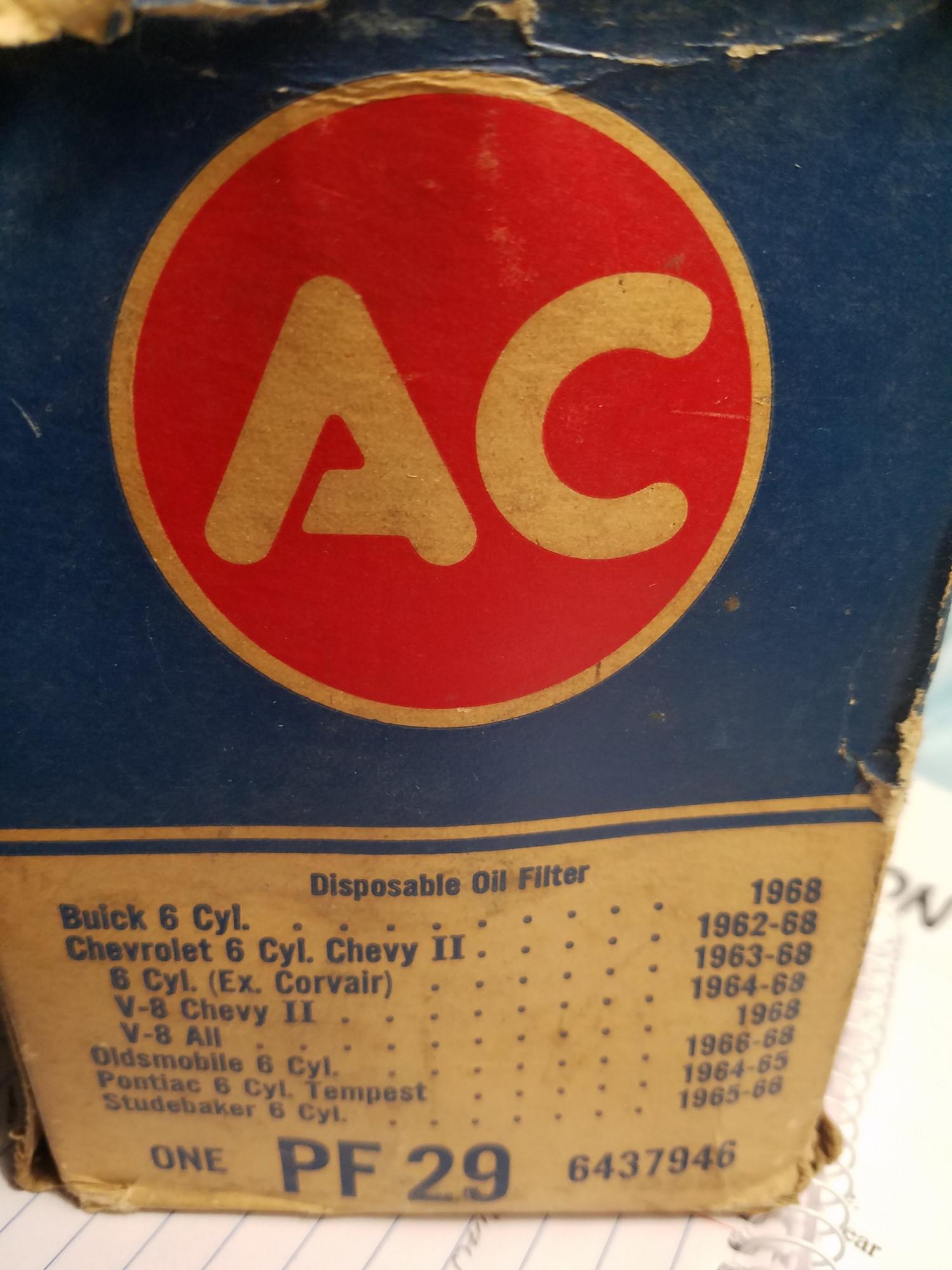 This is a PF29 oil filter used in 1968 and early 1969. The box for this filter is dated June of 1968. $200 shipped.