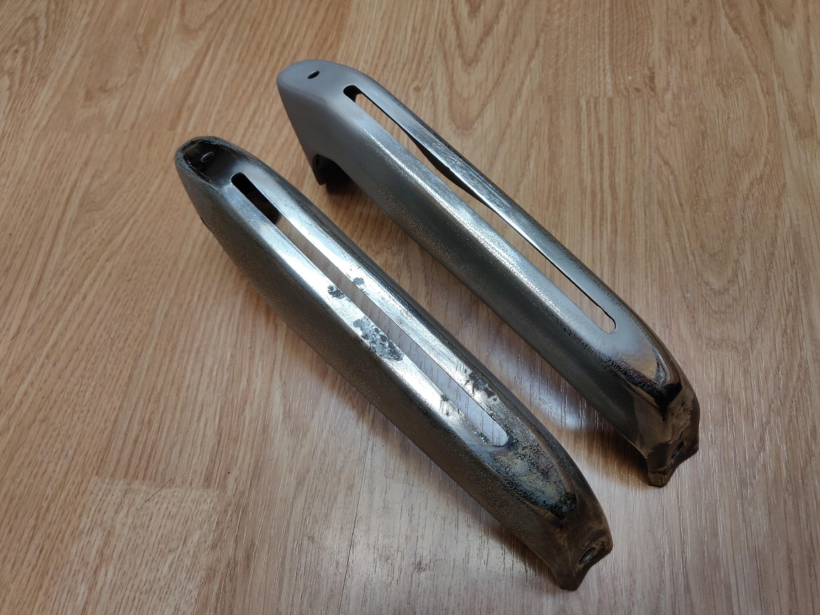 Selling a pair of OEM rear bumper guards for 1969 Chevelles. These appear to be straight with no dents. They will need to be rechromed before running them as they have been previously beadblasted. Matched pair with L and R stamps. $250 + $15 shipping to most US locations. Paypal F&F.