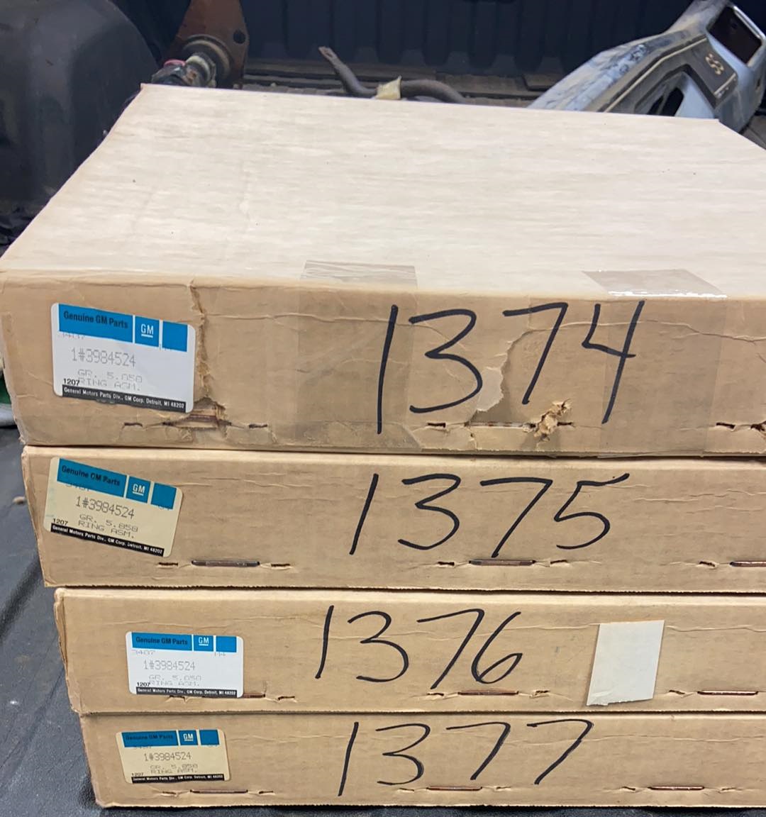 Set of Four NOS 3984524 15x7" Wheel Trim rings, fits 1970 to 1981 Camaro Z28 and 1971 1972 Chevelle SS. Two boxes are still stapled shut while I opened two for the first time for these photos. Boxes are all dated with 1984 date codes.