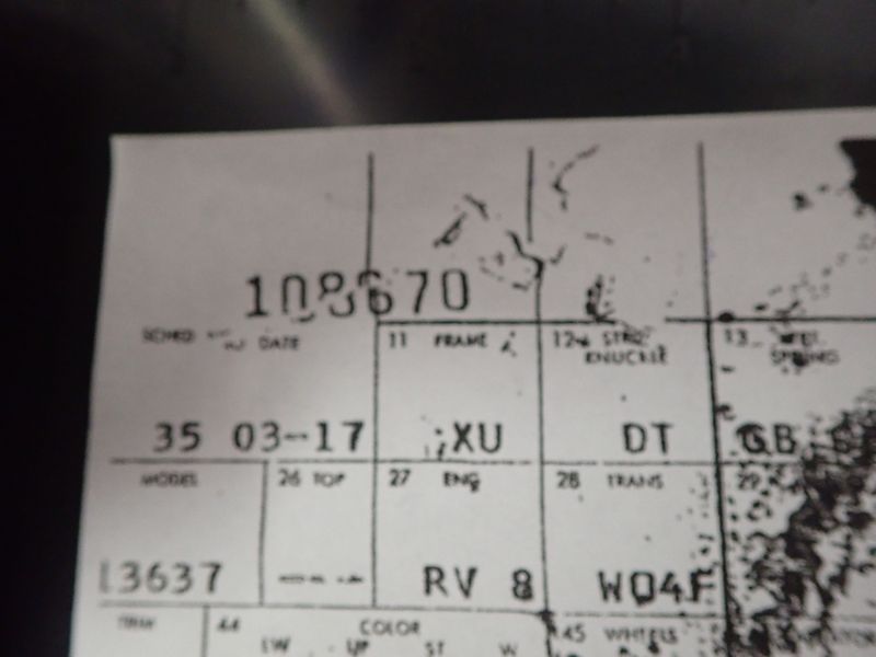 Typically the last two or three digits of the full sequence number are written on components that are built up on subassembly lines and then conveyed in sequence to the main line (front end sheetmetal, rear axle, tire/wheel assemblies, seats, etc). My Flint built pickup was "number 87" (full sequence number was probably around 133887). K ![]() ![]()