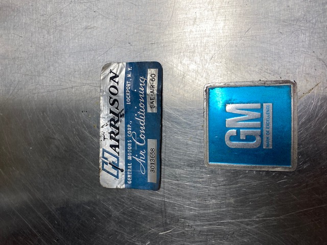 Free to Someone who can use an Original 1968 396 Camaro Harrison Air Conditioning Foil Label # 3013658. Came off my 1968 RS / SS 396 Grotto Blue Convertible I did a Frame Off on in 1995. I don't think anyone is reproducing it. Original 1967 Corvette GM Foil door label shown for size, will included if wanted. Just give me your address in the lower 48 and I'll send it to you. Free, Nadda, Zip. First come first served,