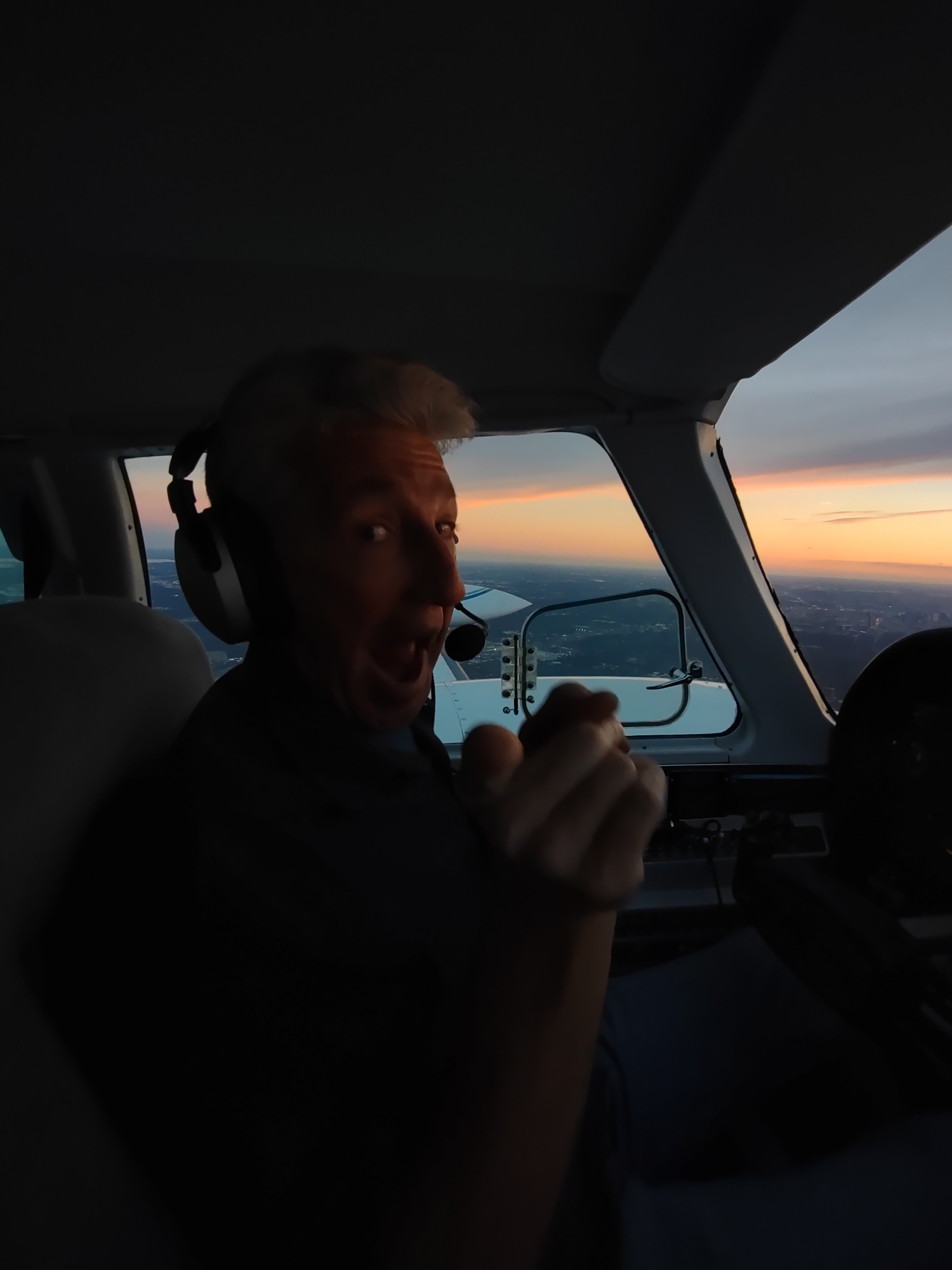 I removed the last row of seats and pushed row two all the way forward then loaded up the pup and we were on the way! A perfect flight up. The weather was beautiful. An hour and thirty minute flight. I mean, who knew Montana was so close to Texas! On the way home we were treated to a gorgeous sunset. A perfect ending to a perfect day. We later found out from the owner that Nickolai was set to be euthanized last week without someone adopting him yet the owner had no way of getting the dog up to him. So this transport really helped out. We’re going to try and do this once a month or so as weather and scheduling allow. It’ll be tricky since MCACN Air has seen a steady increase in bookings lately.