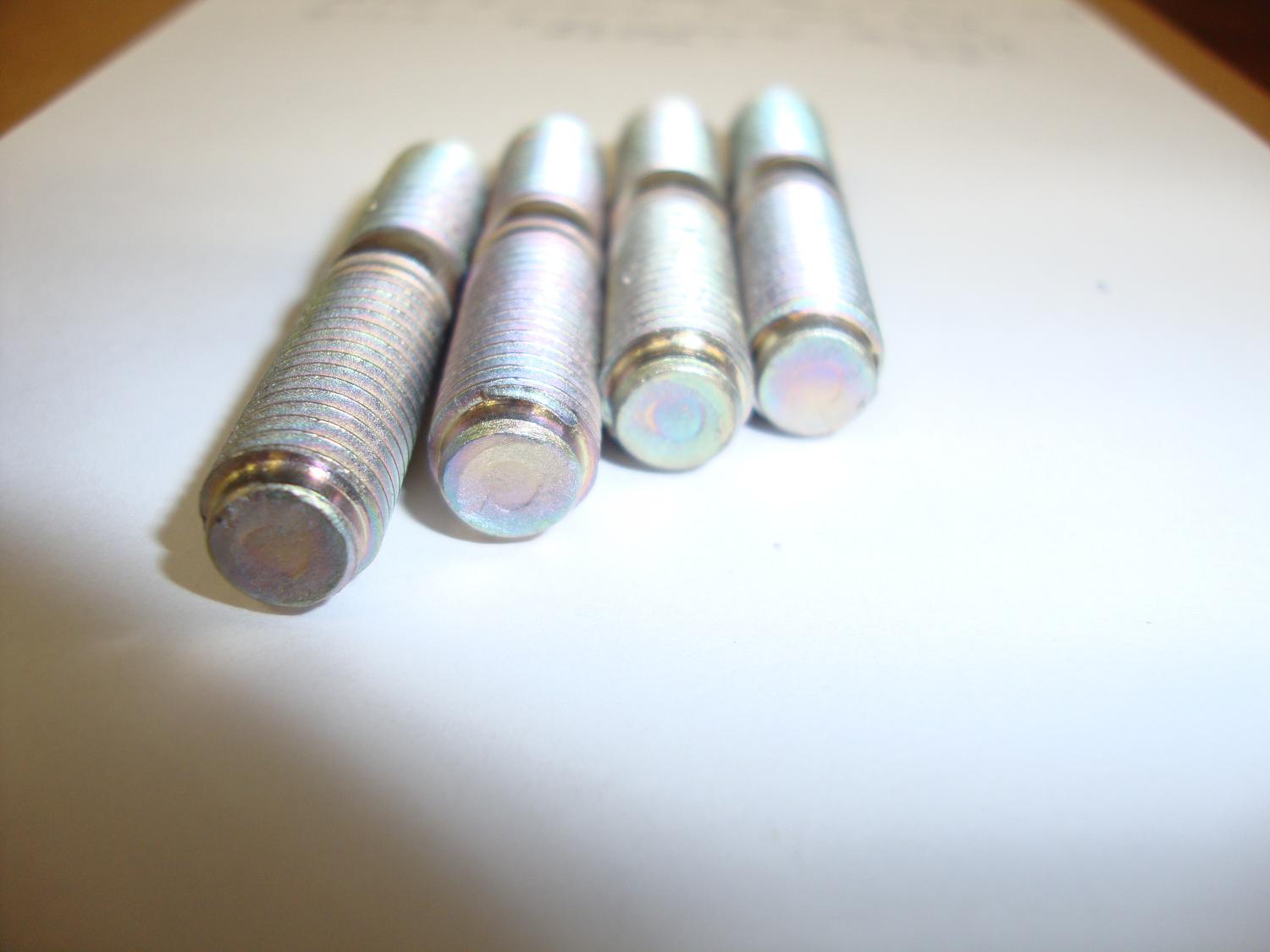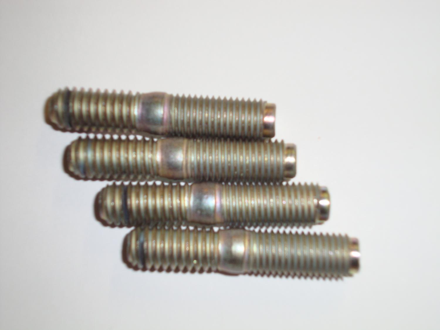 For Sale; Background, I removed my Original Studs from my 1968Z intake to send to a plater for refinishing only to have them LOST by the provider. So I reverse engineered the studs using a fine commercial starter stock. I machined (Lathe work) the Dog Point (Turned down Tip) as per Original samples then glass beaded and sent them off to a different zinc plater for ATSM B38 Zinc Type II yellow chromated, wire hung plating.