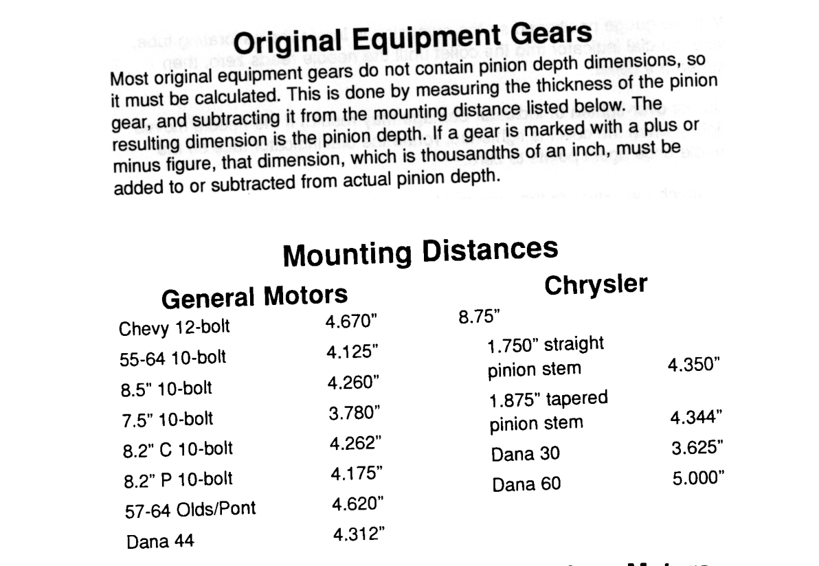 Is there a formula that converts GM pinion codes to modern pinion depth specification? If so this will save me a LOT of time.