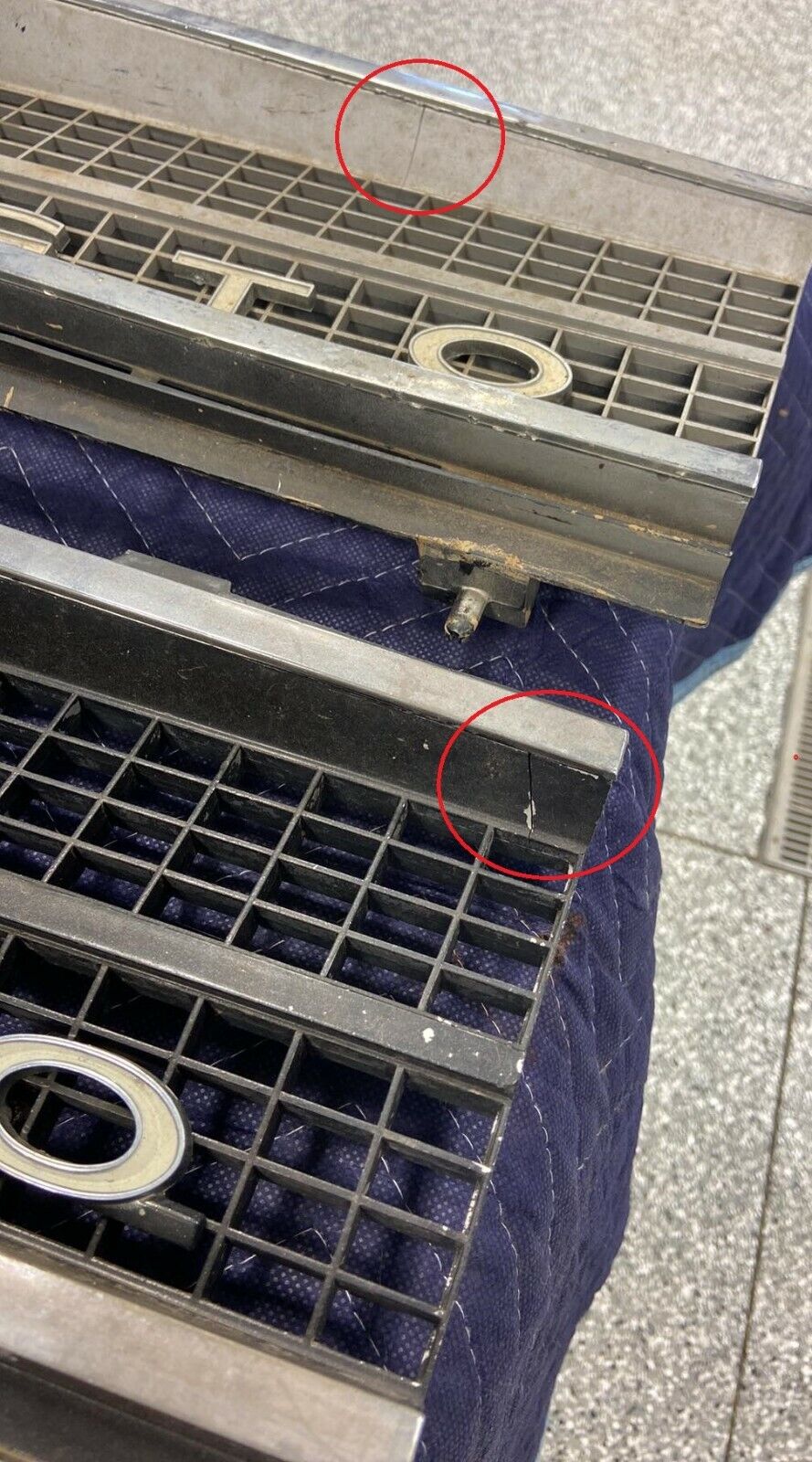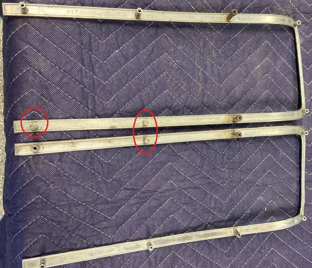 1969 Pontiac GTO Judge Front Grill Set for Hidden Lights with a hoard of extra Pieces, I circled what I believe are issues with cracks or snapped off screws in the trim moldings which are throw in anyways. You can still easily repair these issues if you know how and want Original GM pieces, see photos as I circled them in RED. You get all Nine Grill pieces and as a bonus four grills still have the original GTO Emblems and I am throwing in two extra Trim Moldings.