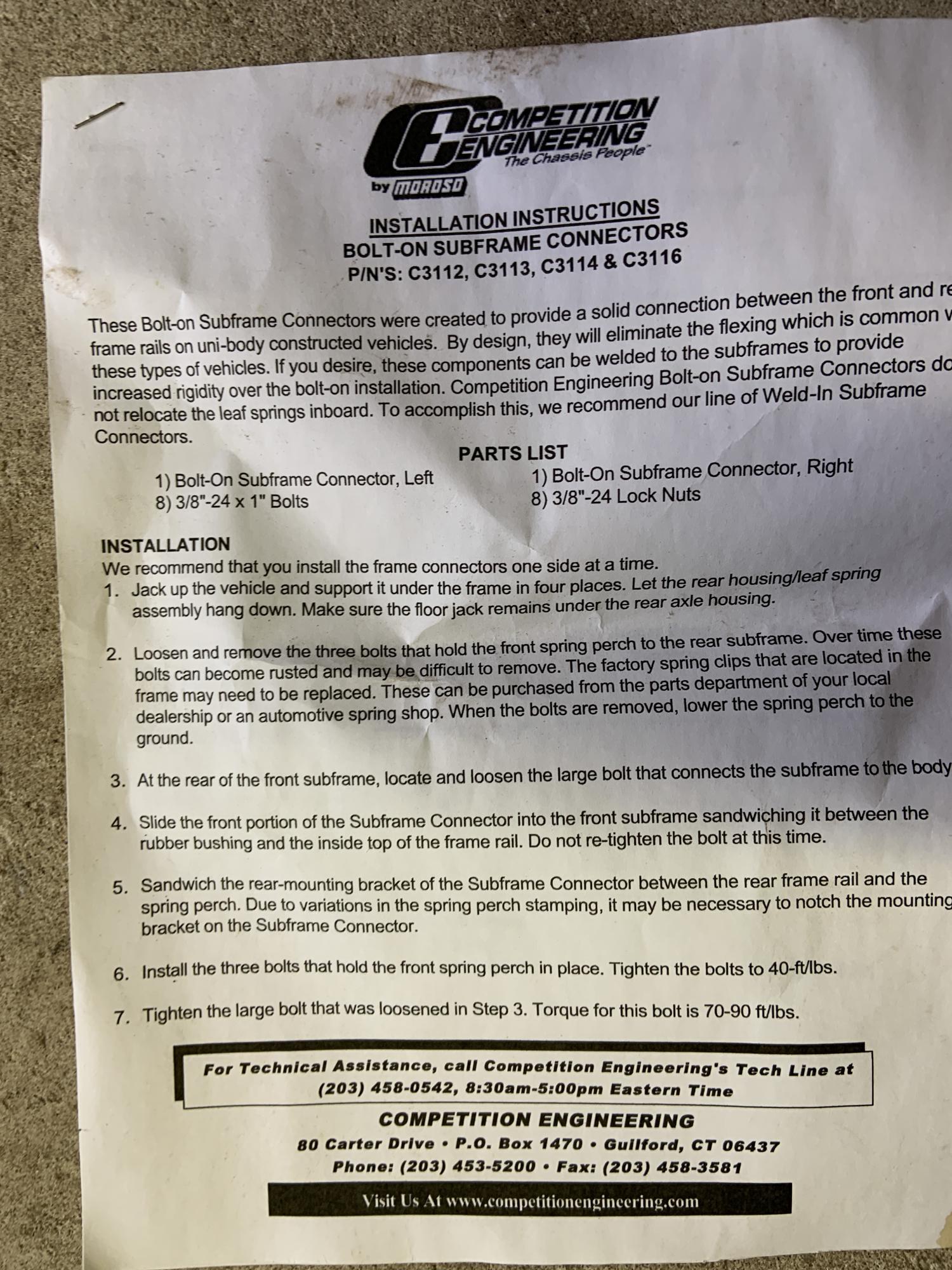 Set of brand new #C3114 Competition Engineering bolt-in frame connectors for a 1976 to 1981 Firebird or Camaro. The catalog page indicates no floorpan modifications are required (unlike the 1970 to 1975 version).