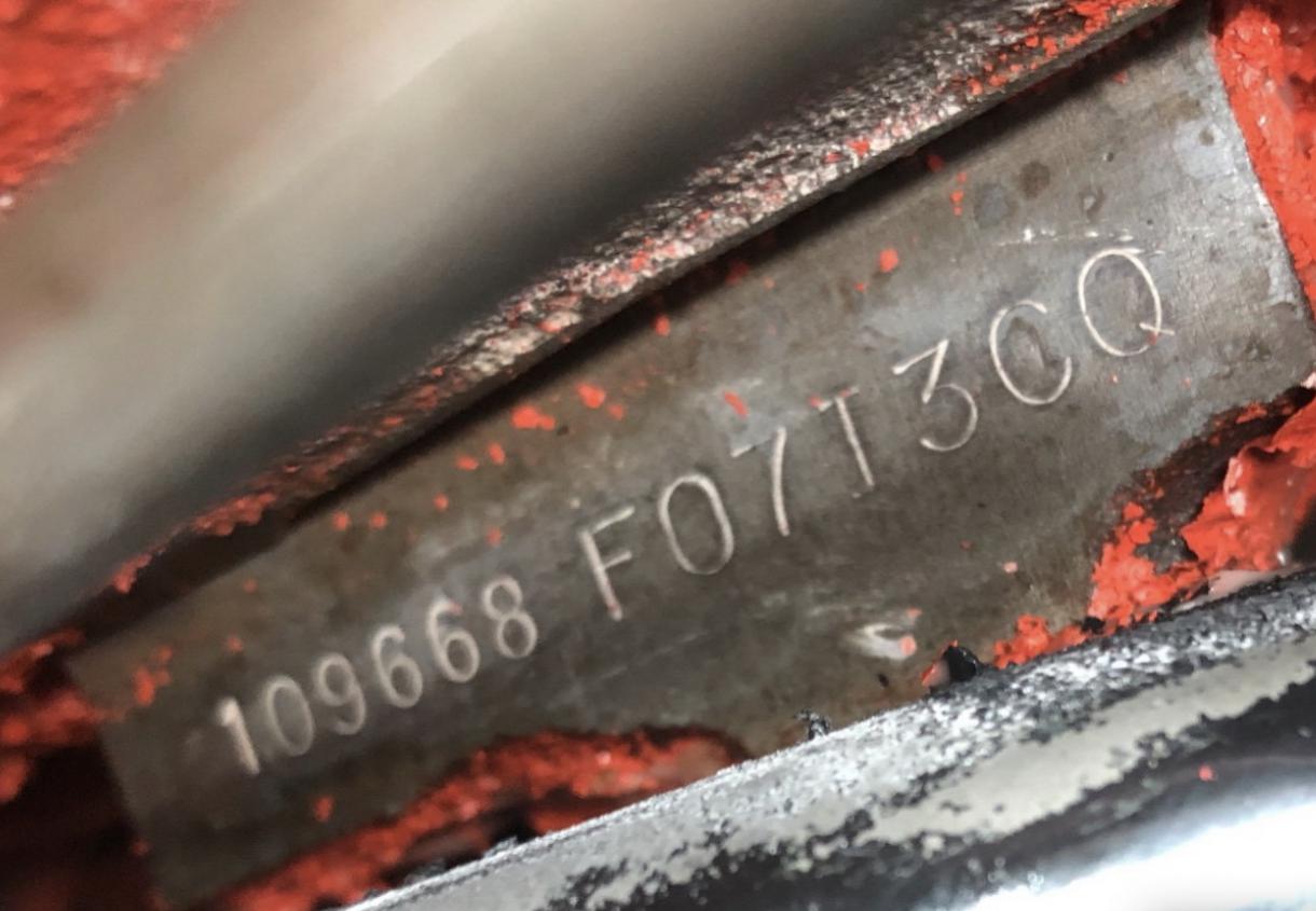 Interesting engine pad I saw in a ‘57 Bel Air I looked at the other day. I was unable to verify the casting date, but did verify the casting number of 3756519, which is a ‘58-61 283. The pad is stamped F0906DG, which is a 230hp/PG Corvette engine assembled in Flint on September 6. 100483 is a 1960 Corvette serial number derivative, and was a car built in the first month of production in October 1959. Most resources you find, especially older ones, suggest that the stamping of partial serial numbers on the engine pads of 1960 model year Corvettes started several months into production, like December or January around car 1500. This engine has been in this Bel Air for what looks to be 30 years or so, and its not trying to be anything its not. I like the broach marks and the stamp, and I now believe they were stamping serial numbers on at least some of the cars almost from the get-go.