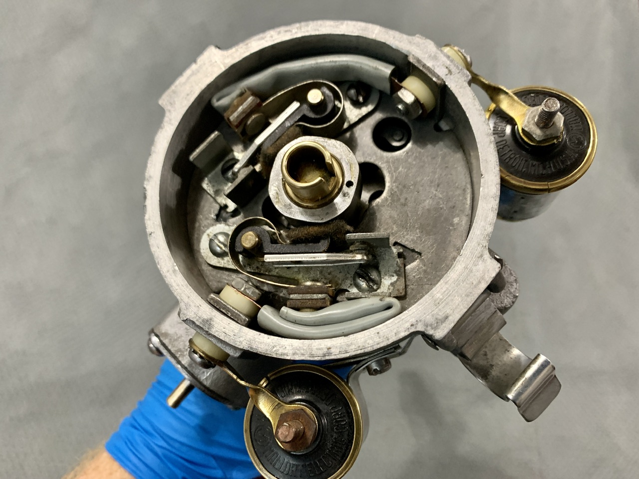 Just finished going through this one. Very clean piece and everything was disassembled, cleaned and moly lube applied to wear surfaces. Points are set to 0.012” and both condensers working from my ohm resistance testing. Body was cleaned to original finish and only item clear coated were the condensers. This was to help seal where the mini cracks are starting to appear. Vacuum advance with a very clean puck, new gasket and advance weights left at their factory setting. What you see is what you get. Bushings looked brand new. Distributor rotor is a good original as well as the cap. Inner bladder is still original 7mm as is the top. $475 plus shipping.