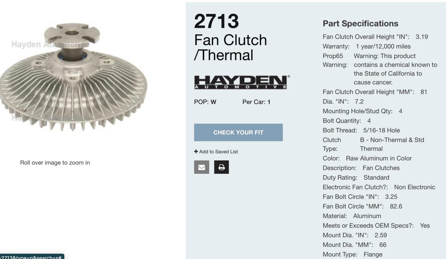 Looking for a new functional fan clutch that will bolt up to my L78 fan with 3.25" bolt pattern. Can't afford an original clutch right now but I'd like to run the correct fan. I can't seem to find one with a 3.25" bolt pattern. Anyone? |