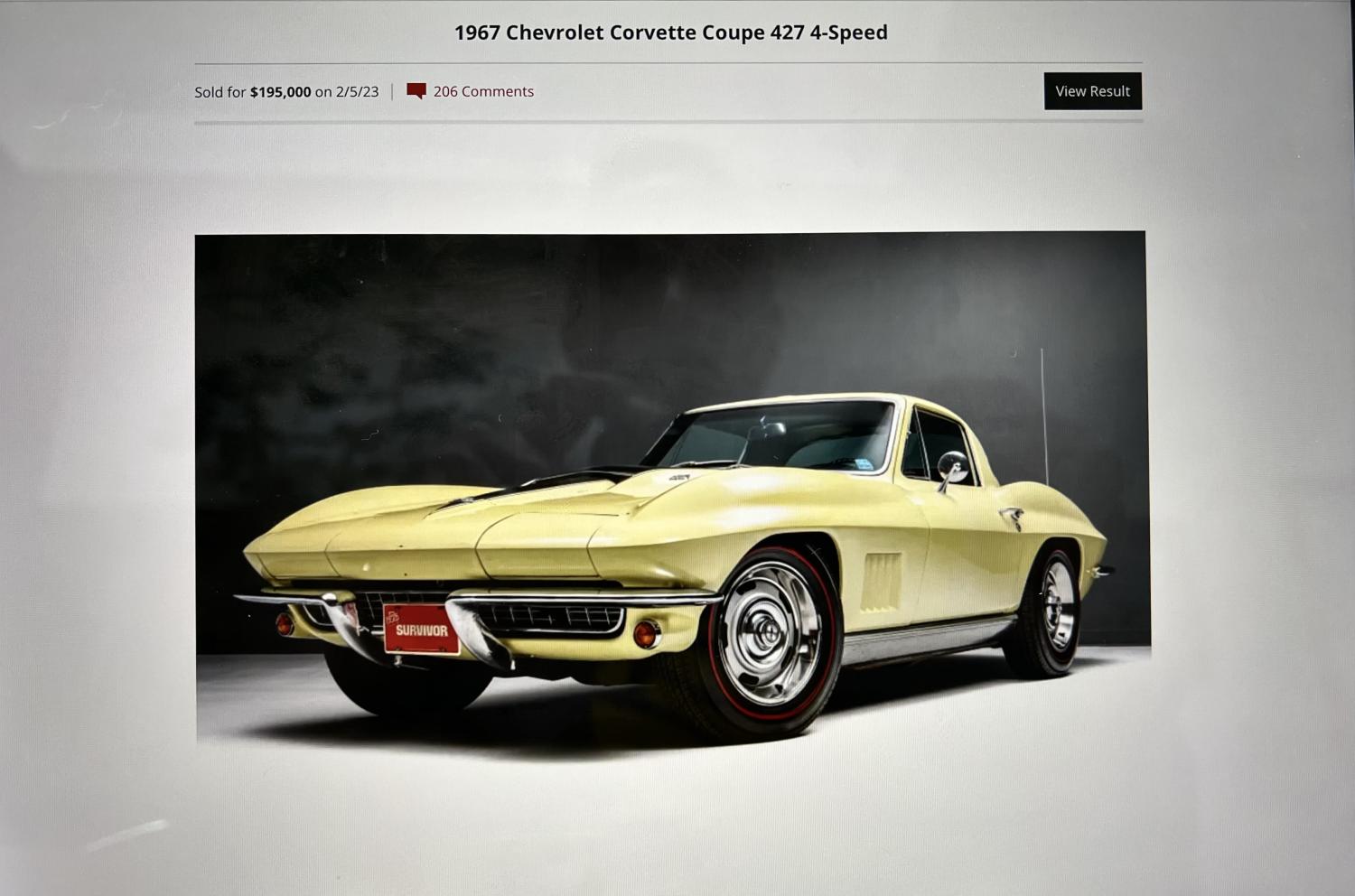 Just finished auction of a Very Nice ‘67 Corvette Survivor.