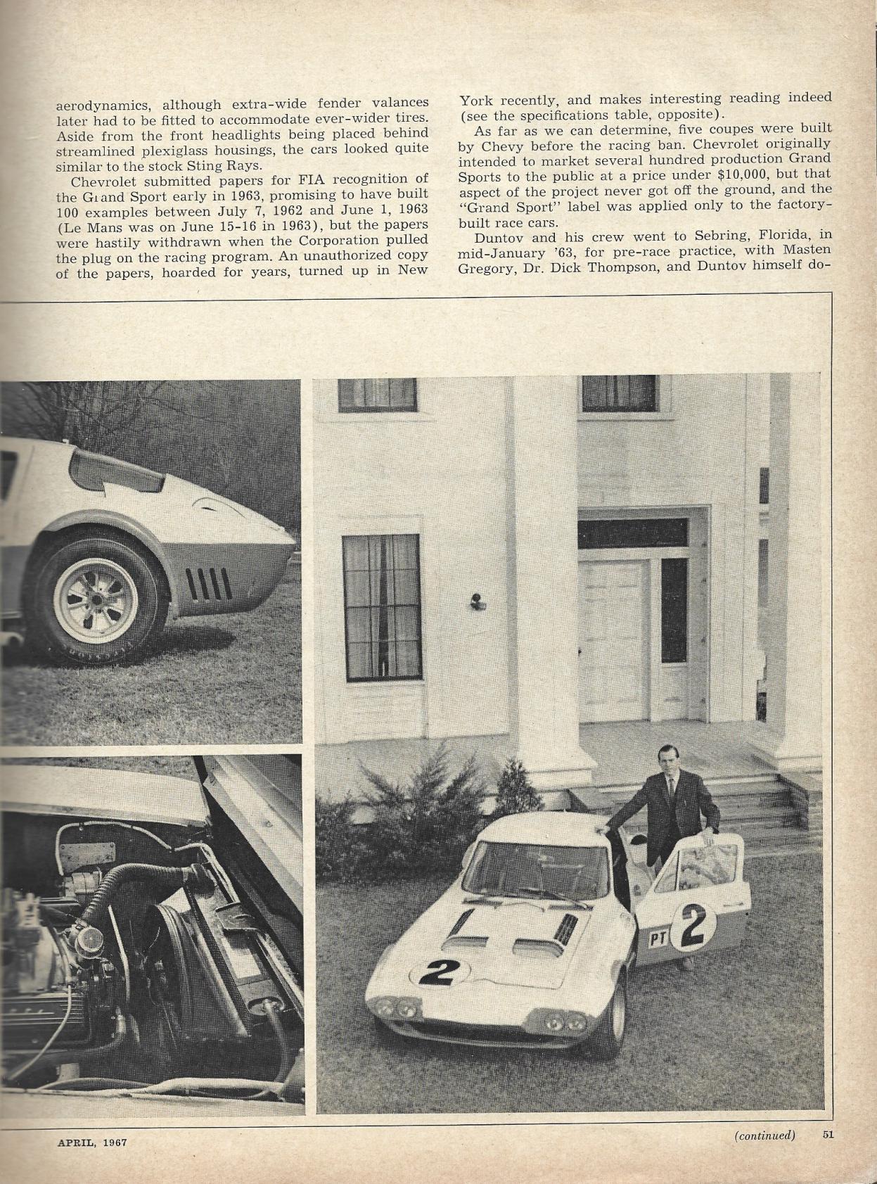 This car was the brainchild of Zora Duntov who found a loophole (no displacement limit) in the GT class. It was game-on, and Zora Duntov put together a design team comprised of the best of the best, with the goal of winning at Le Mans. Unfortunately, after submitting paperwork to the FIA in early 1963, for car recognition, they were immediately withdrawn after GM corporate banned all racing programs. These cars were sparingly raced but never fully developed or prepared. One can only imagine the impact and history of success they might have achieved.....