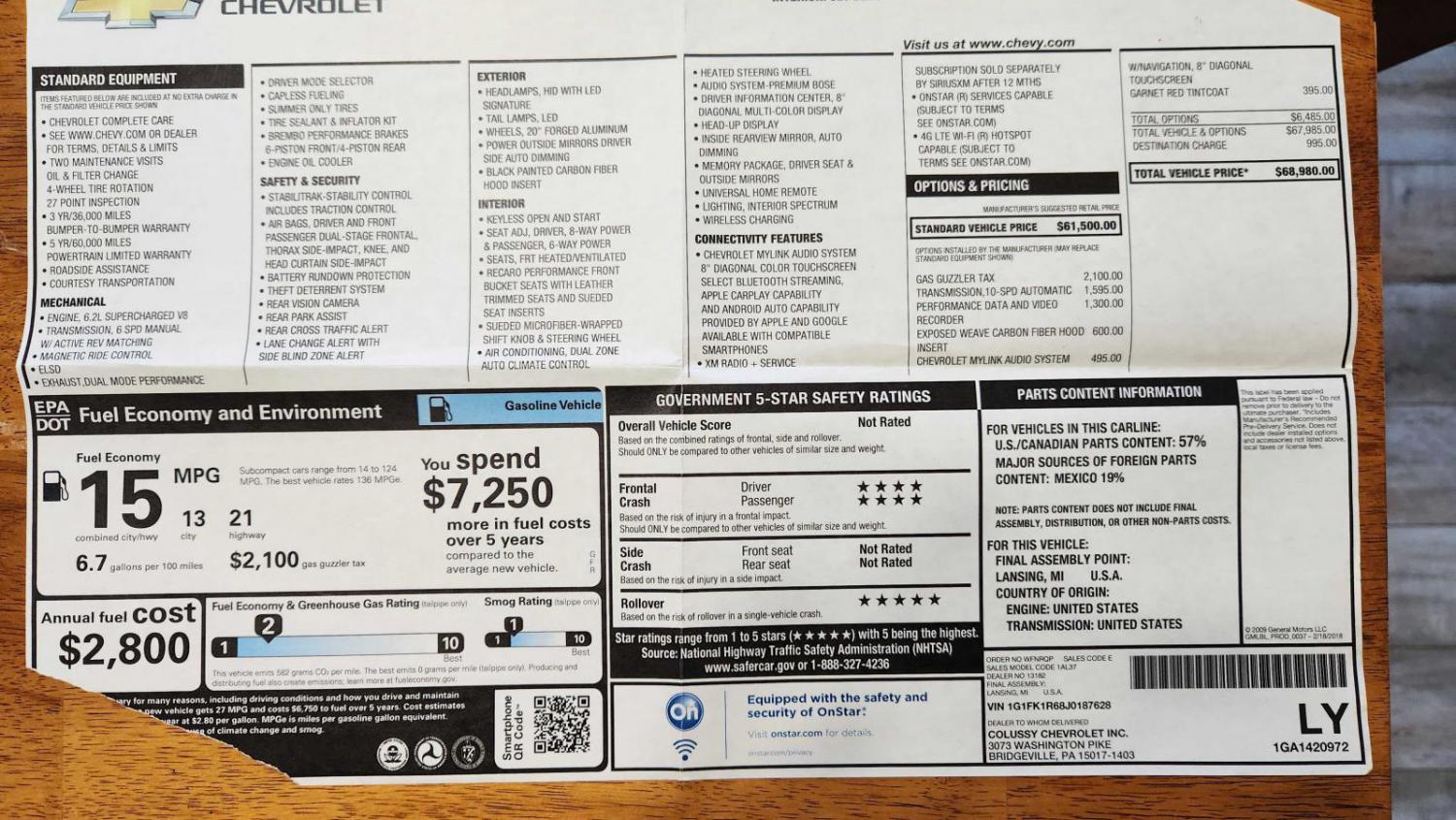 This ZL1 is beautiful Garnet Red Tintcoat. The 10 speed automatic transmission is amazing. The Recaro seats fit like a glove. The sounds of the supercharger and AWE exhaust are music to the ears. This car has all of the standard ZL1 equipment with the following options: 10 Speed Automatic Transmission, Navigation, Carbon Fiber Hood Insert, and Performance Data Recorder (PDR). (No sunroof) More than $7k invested in aftermarket parts including: ASC ZL1 rock chip guards WeatherTech floor liners BMR Bushing kit Roto-Fab cold air intake LED lighting upgrade including: front turn signals, reverse and license plate ZL1 Addons lift pads (6) Diode Dynamics LED tinted sidemarkers Window tinting on side and back windows Factory wheels powder coated black with black lug nuts and ZL1 center caps Nitto NT555RII Drag Radials Banks iDash gauges (2) with A-pillar gauge pod AWE Touring cat-back exhaust with link pipes (secondary cat delete) Ceramic coating on entire car 2020 New AGM battery 2022 Clean Car fax 13,300 miles and still under GM powertrain warranty $62,500.00 obo trade 630-377-1222 Last edited by Stefano; 12-22-2022 at 12:39 AM. |