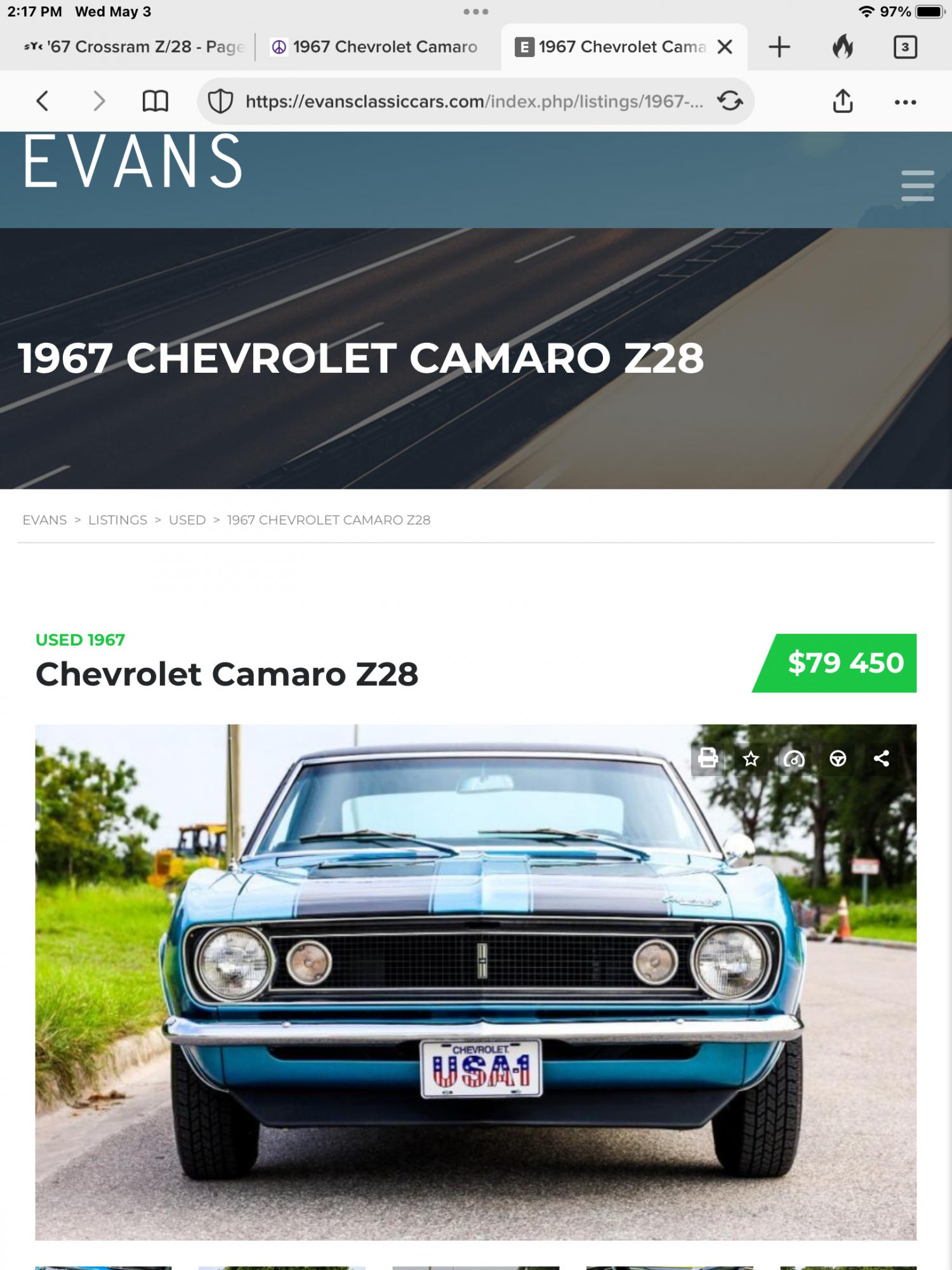 Link to 1967 Z/28 auction |