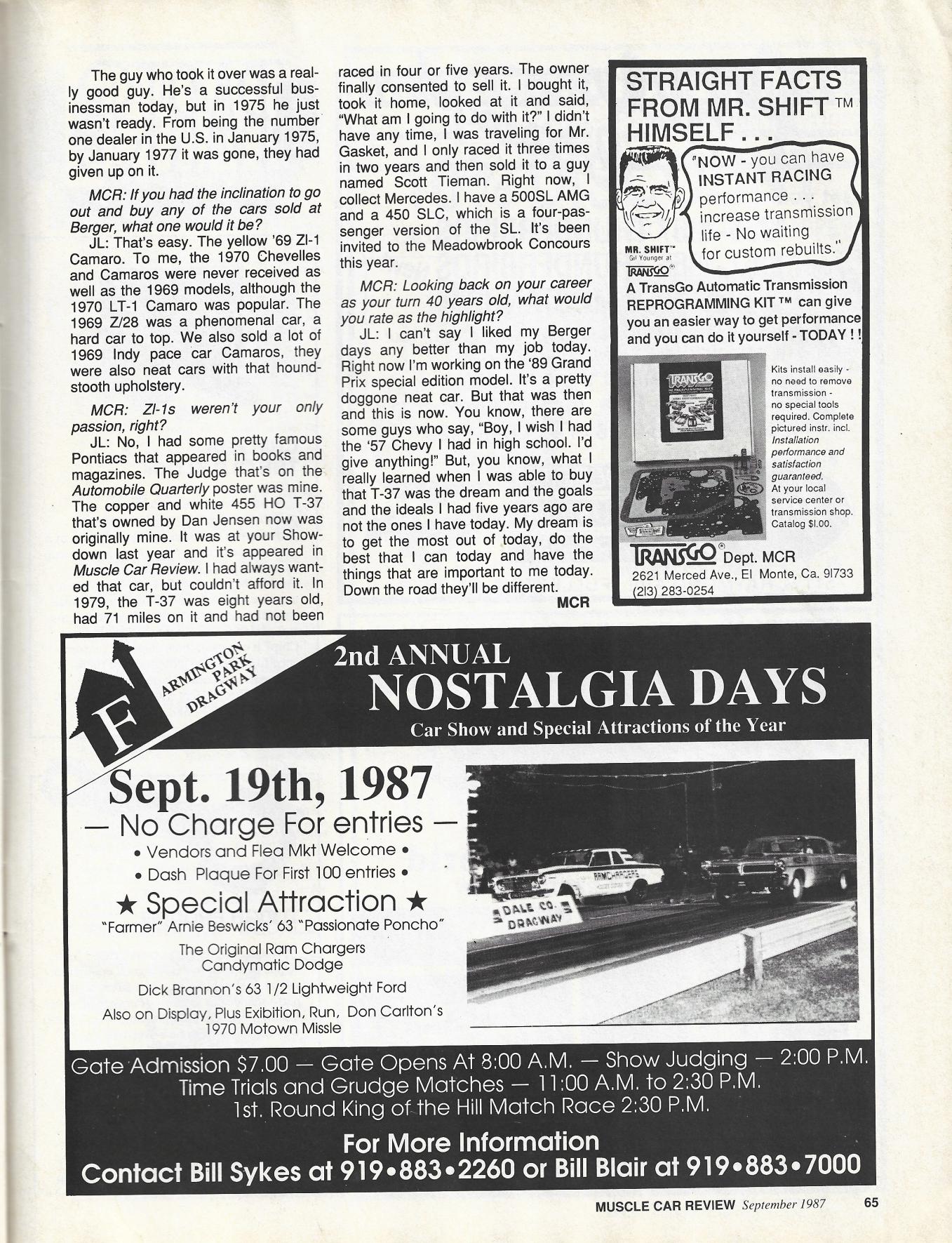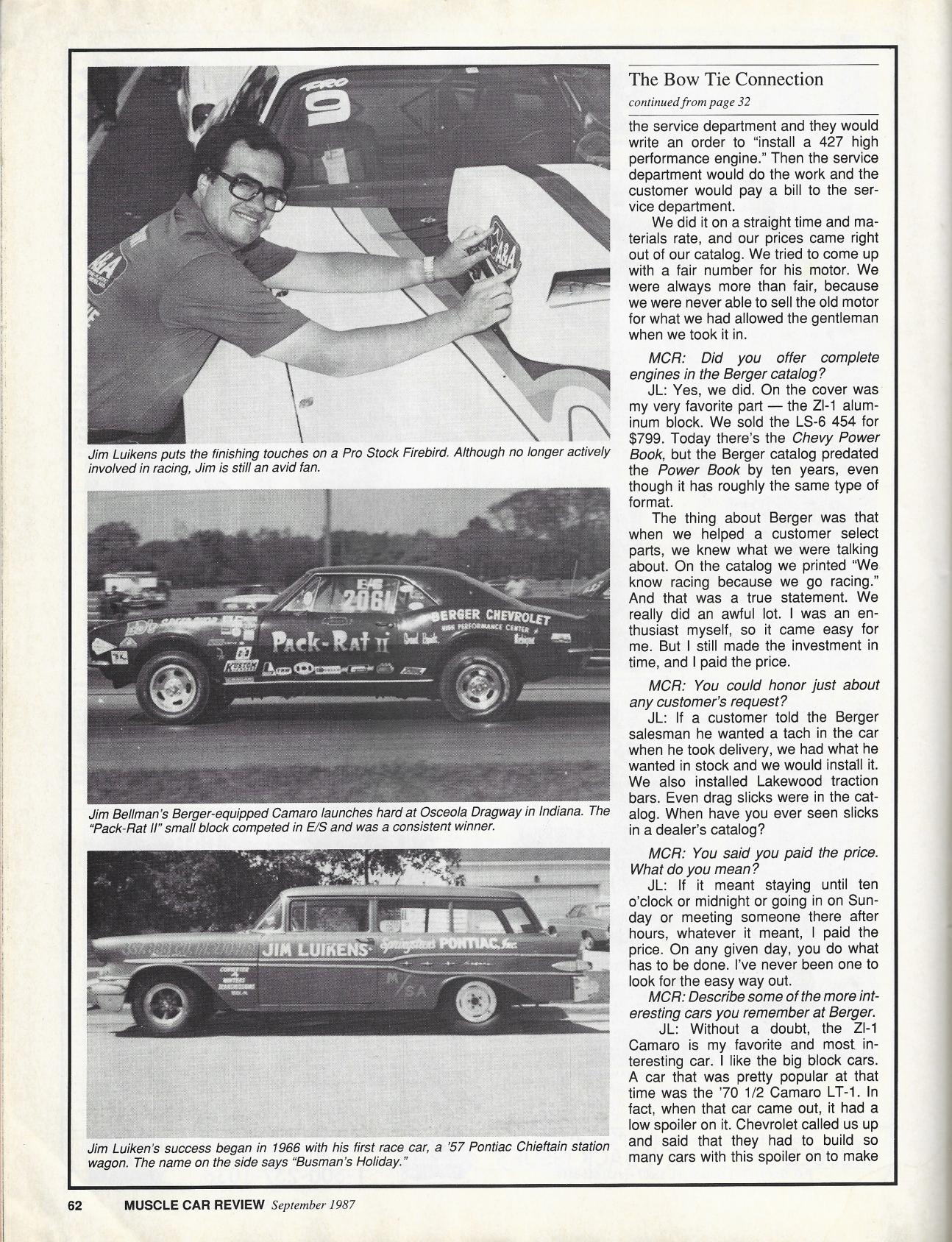 Jim Luikens was the man behind Bergers performance. Jim passed away Feb 25th 2022 but his legacy lives on. Here's an article/ interview with Jim detailing Bergers involvement in racing, performance cars, COPOs and his specialty performance parts.