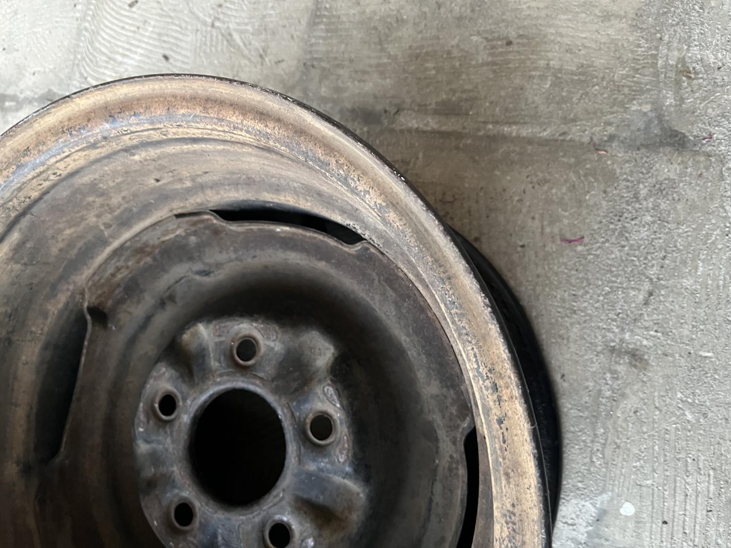 I have one single NT (Norris Technologies) 14X7 disc brake steel wheel available here. Valve stem code is IF (NOT XT) but it is identical to those. Some say these were Firebird standard wheels, or VN / Van Nuys / LOS / Los Angeles built SS Camaros - there are documented cases... These, I believe, were dated on the rim lip ddmmy and I can see 8019 - the leading digit isn't obvious to me, so my best guess is January X8, 1969 - either the 8, 18, or 28 of January is the likely date if you're concerned. Anyway, a cheaper alternative to the more popular XTs. It was the spare from a car being restored and was shot with a recent and quick amateur black paint job, the spotting is rubbing compound residue. The backside is untouched and original IMO and suggests an original black wheel - so maybe it was a full wheel cover rim? Or from a black car maybe. There are scratches from hubcaps or trim rings or both as shown. Either way, it has a few minor nicks and scrapes of course and would need some restoration work to be perfect, but all in all it is very presentable as shown. 250.00 PPFF plus shipping & insurance if wanted. Cheers all, Anthony |
