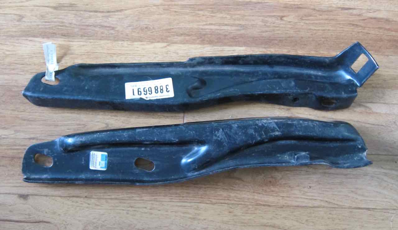 Original 3886691 and 3886692 inner front bumper brackets for 1967 and 1968 Camaros. Never used and still have the old factory stickers on them. $125 for the pair plus shipping.