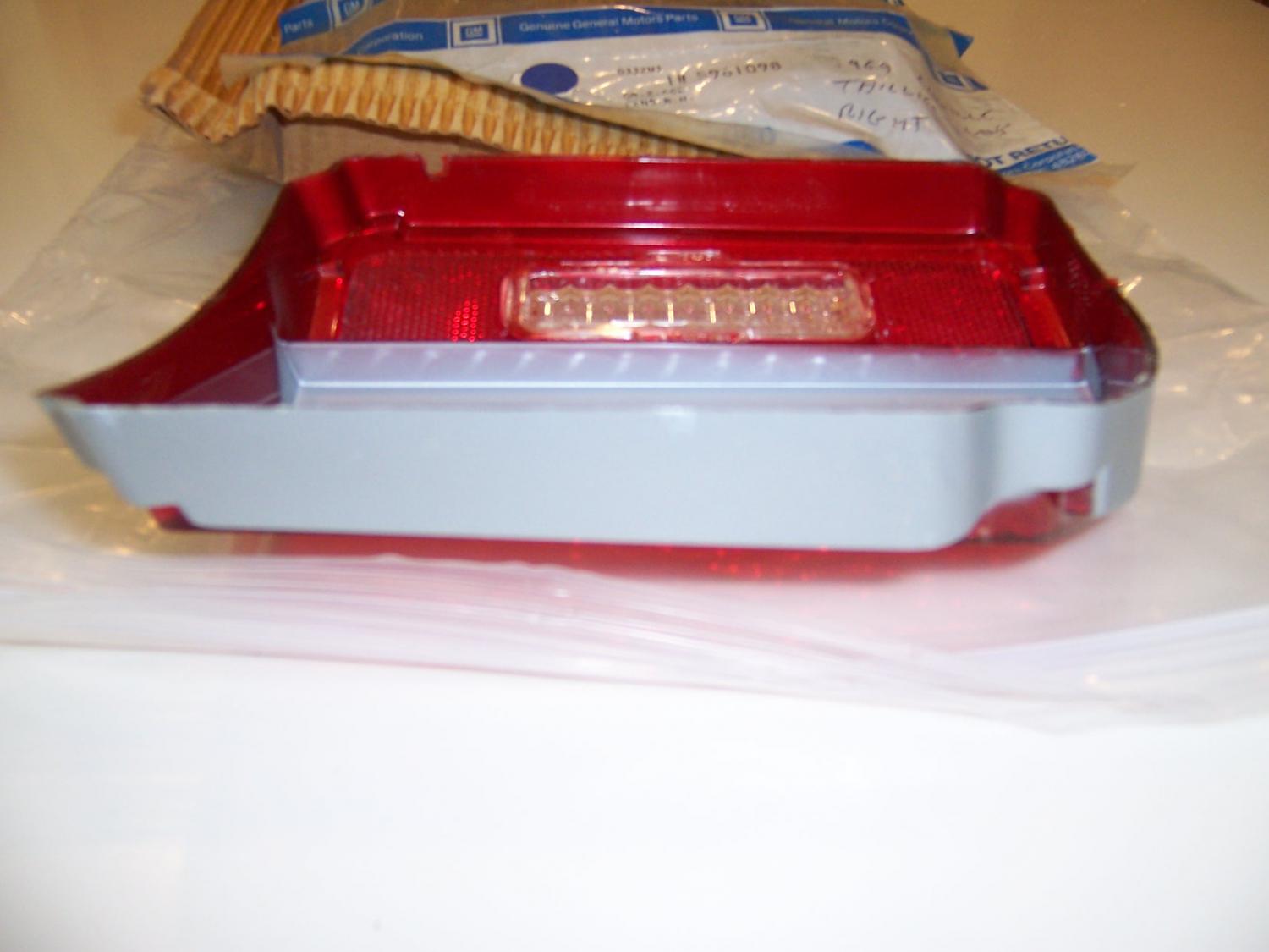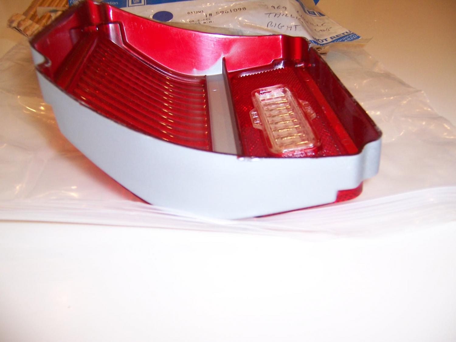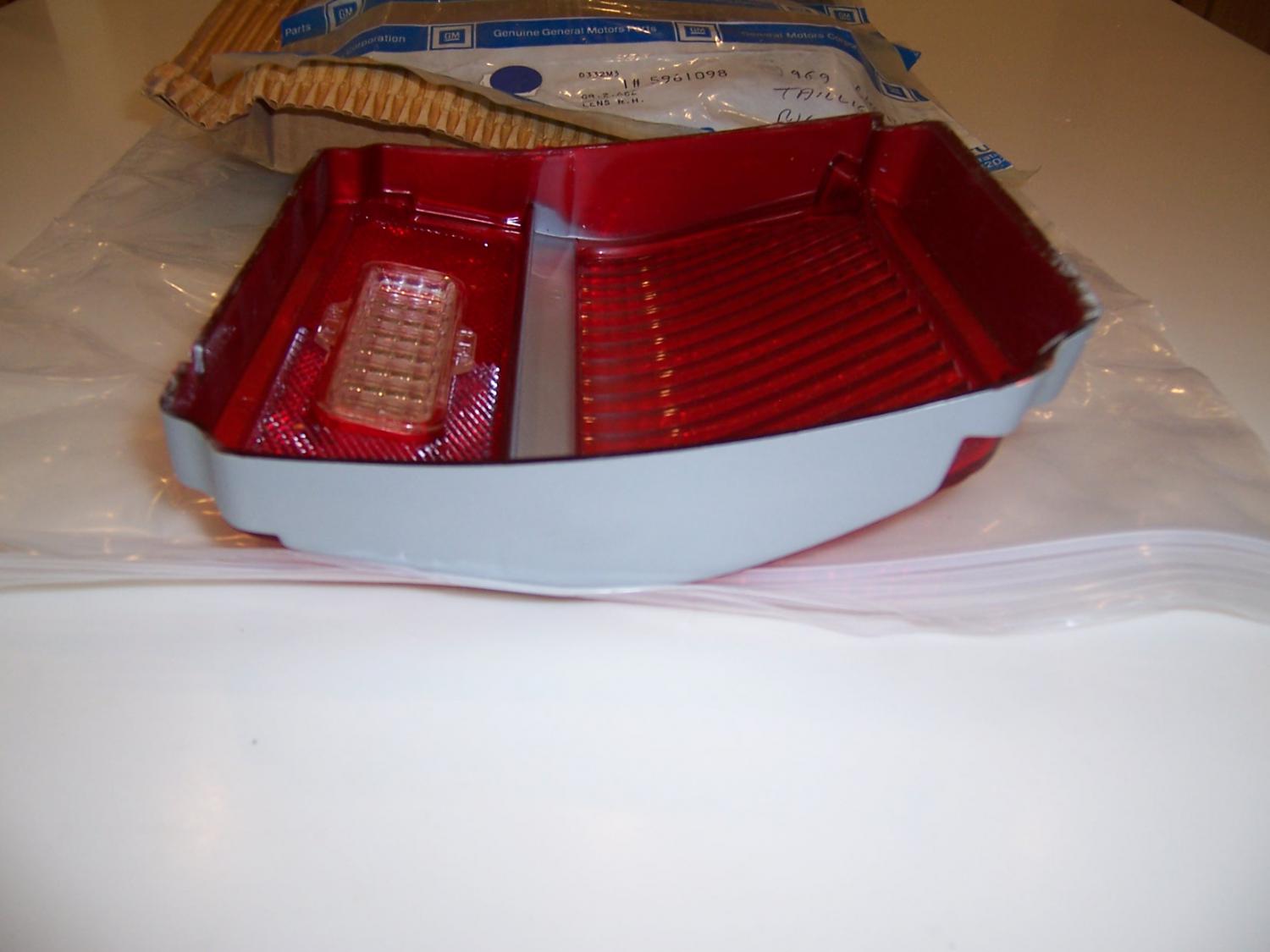 I currently have on eBay a NOS GM taillight lens for a 1969 Chevelle, p/n 5961098. This is the right side (passenger side) lens. It is brand new, still in the original factory packaging, which has then been kept in a heavy plastic Ziploc bag ever since I have owned it, which is over 20 years now. Removed from the packaging only for the pictures. Perfect for your finely restored 69 Chevelle, when only original GM parts will do. I have the matching left side lens in equally perfect NOS condition in a separate auction that is running currently. Both of them are being offered with a $9.99 minimum bid and NO RESERVE.