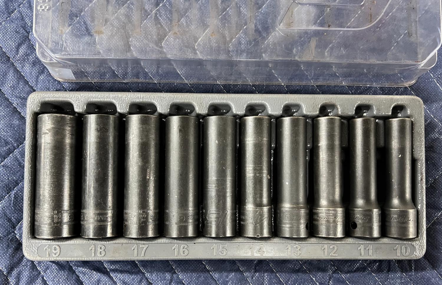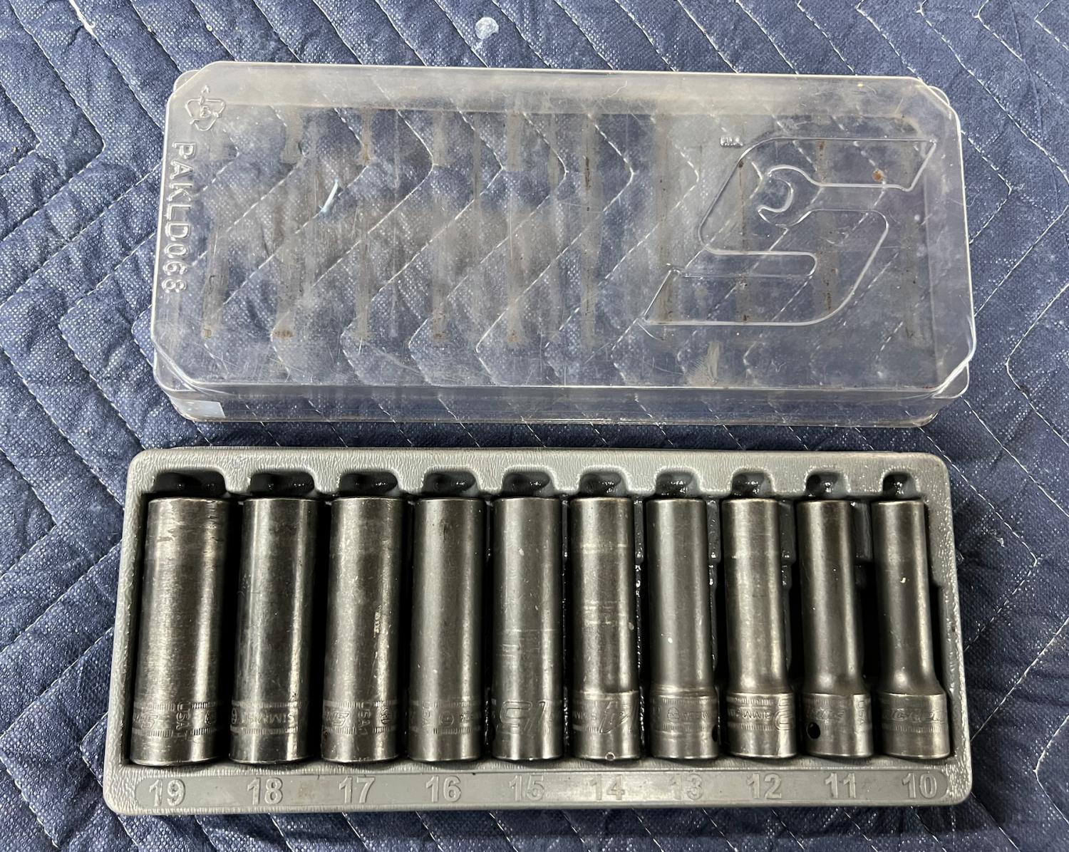 For sale here is a set of Snap On Metric, Deep, 1/2" Impact Sockets PN PAKLD068. 10MM to 19MM. Condition overall is great as expected from light duty (home) use only. Comes with original tray bottom and lid. Retails new at $343 + shipping. Will sell for $250 OBO shipped. Thanks, Dan [email protected]
