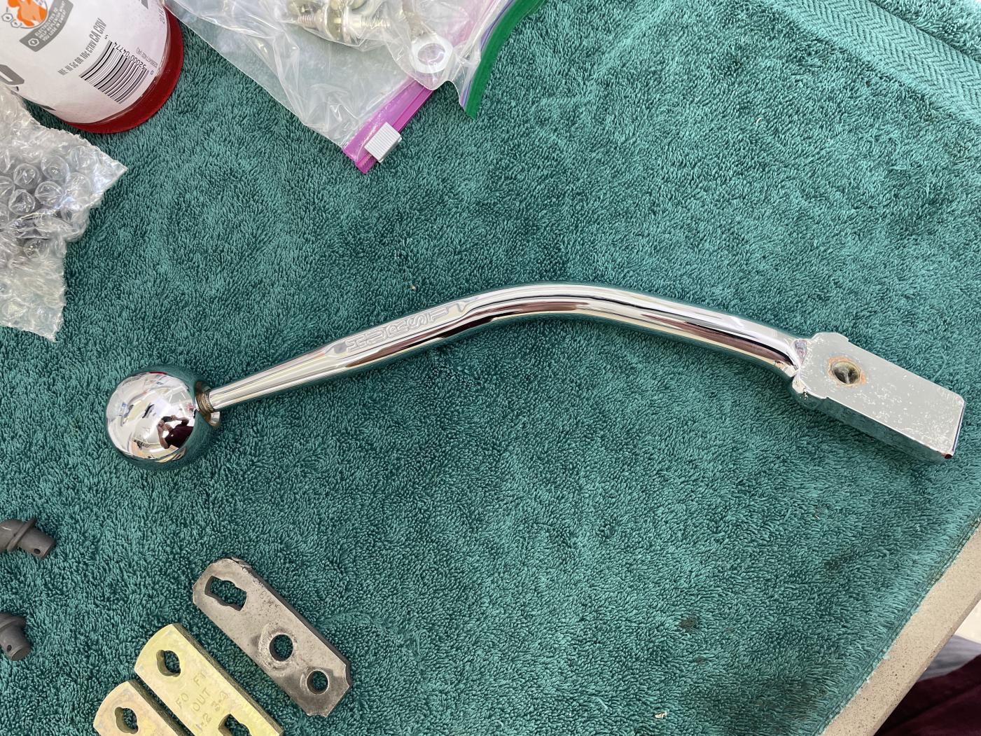 1) 1-2, 3-4 & reverse shifter rods, rod swivels with locking nuts, 2) 1-2, 3-4 & reverse levers - reverse has a slight nick on the corner 3) 1 muncie transmission mounting bracket with phillips screw 4) 1 reverse lockout assembly - swivel, upper and lower rods ( upper rod has numbers) stamped (all other rods DO NOT) 5) Shifter handle with superb rechrome and detailed Hurst re-engraved for crisp look 6) Shifter Ball rechromed (this is the heavier ball) not sure the OZ All parts already plated (except the reverse lever) - clean rust free parts as well! Package of parts above - prefer to sell all together vs individual ALL GM parts (except the shifter ball) as stated above Package price - $1525.00 shipped in USA