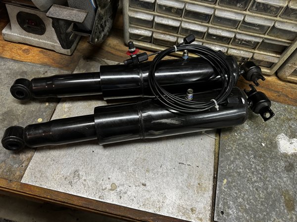 729720 Gabriel Hi Jacker Air shocks with lines - complete setup. From what I can tell via internet searches this is a universal set. If anyone has better information I can change the description. I just removed these from our 62 409 car. Probably only a couple thousand miles on them over the years. Lines still intact with all fittings, nothing cut when I removed - line length was from shock to rear bumper on our 62.