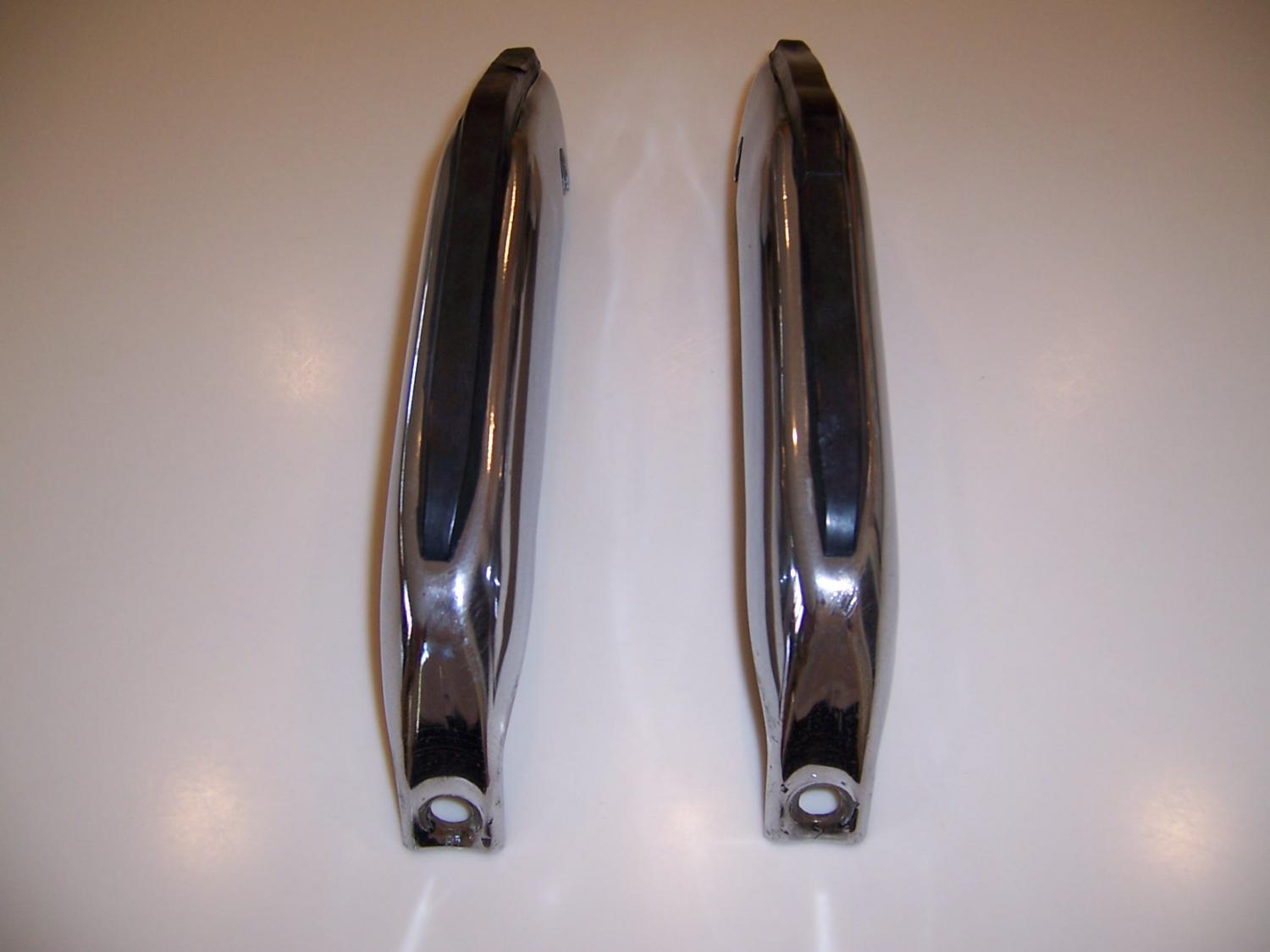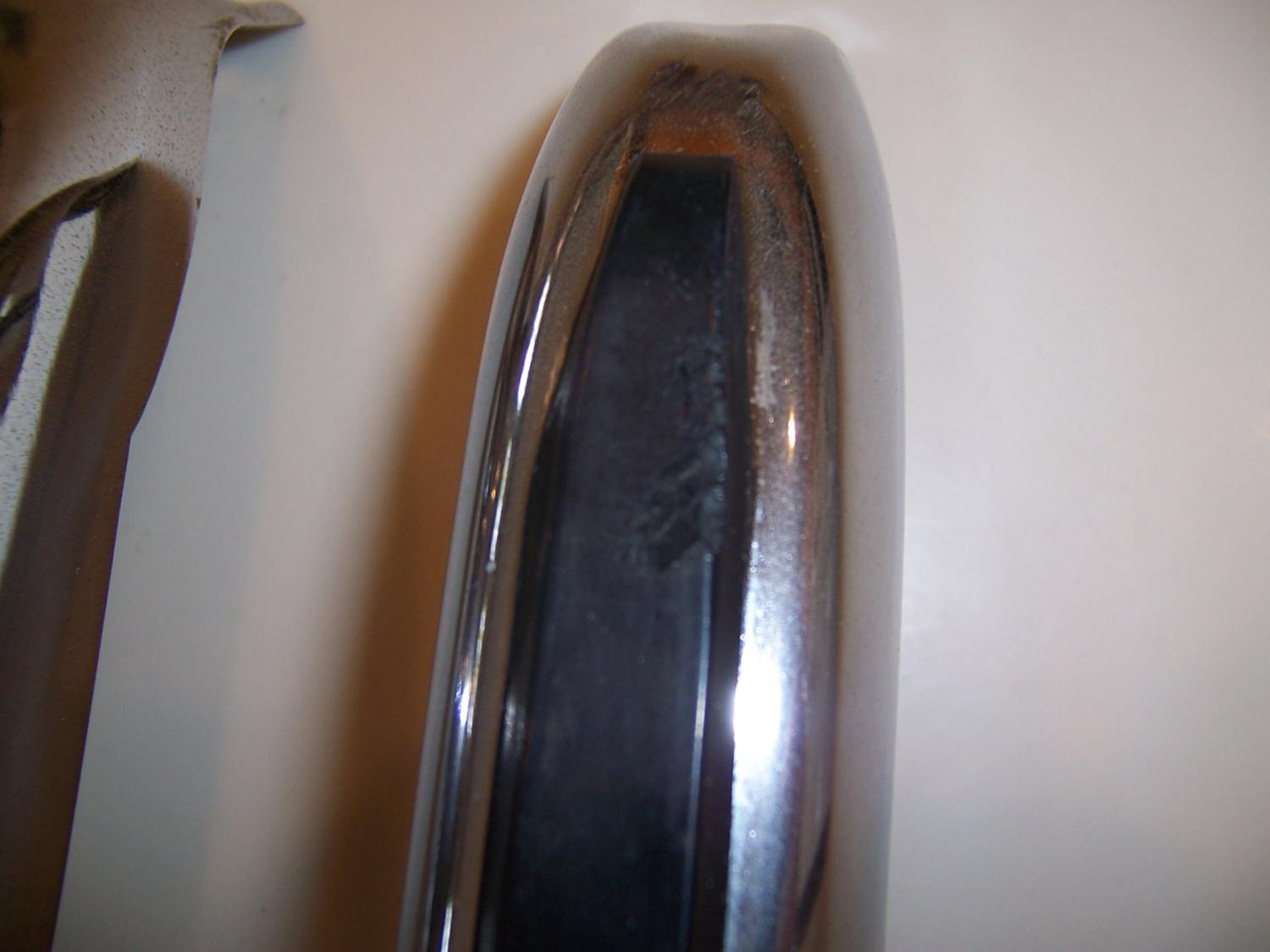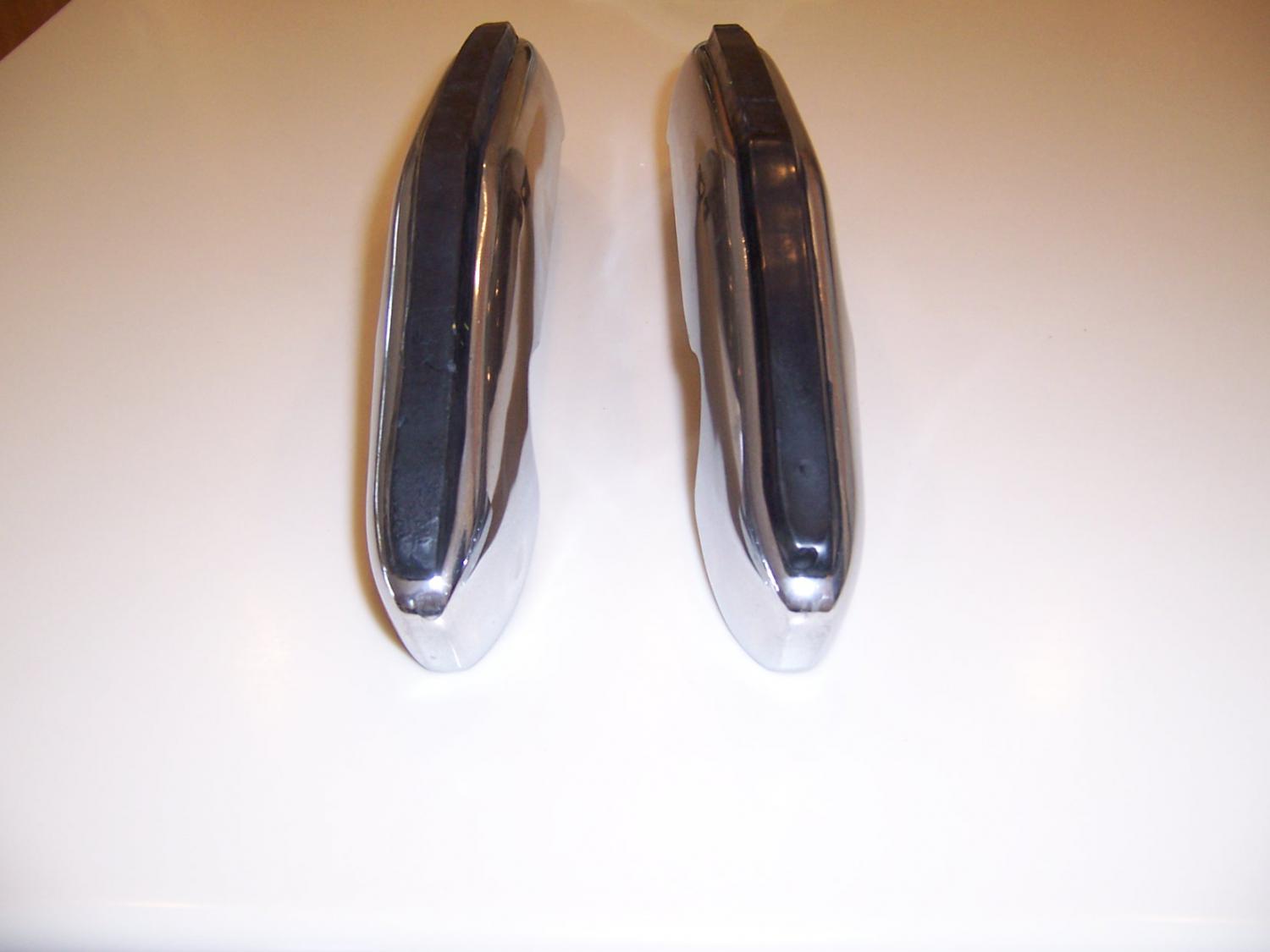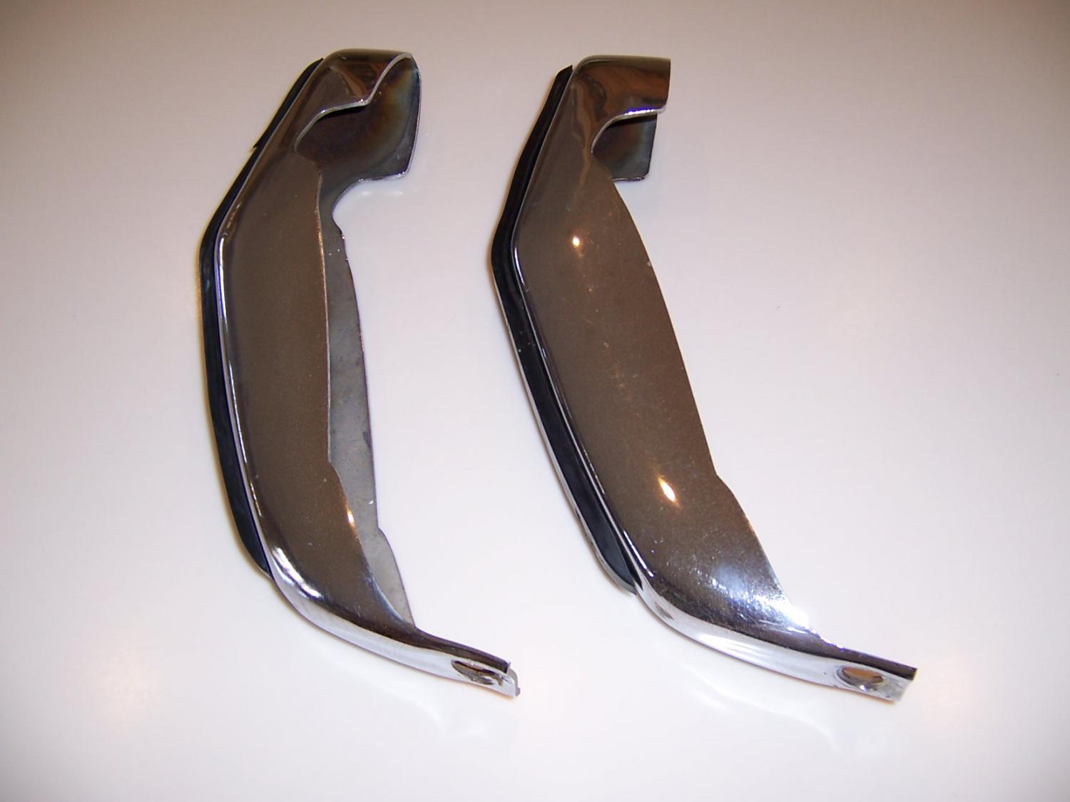 I currently have on eBay a pair of front bumper guards for a 1969 Chevrolet Chevelle or El Camino. They are in nice original condition. If you have a really pristine condition vehicle that you intend to use these on, IMO they should be rechromed and have new rubber inserts. Again IMO, if you have a nice condition driver or cruise night car, they could certainly be used as is. The rubber inserts have some minor imperfections, as shown in the photos. Pictured hardware is included, although I have subsequently discovered that the one long bracket pictured is not part of the mounting hardware. I bought these on eBay almost 22 years ago and never used them. Offered with a $9.99 opening bid and NO RESERVE.