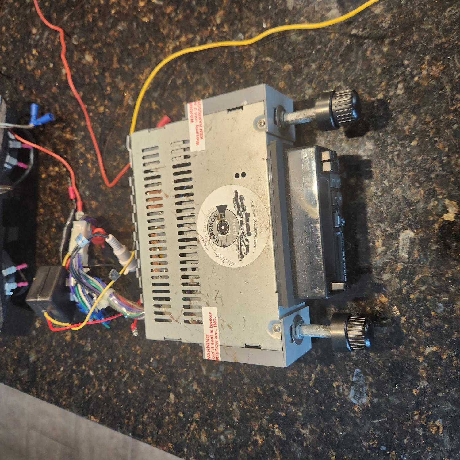 2) Removed this hideous aftermarket am/fm cassette. Luckily nothing was hacked up when installed. It was a rats nest of wires. There something about removing incorrect items and reconfiguring to how it left the factory which was AM with rear speaker. I just sent the front and rear speaker to Jackson Speaker for reconing. Once I get the speakers back reinstallation begins!! The car has chambered exhaust doubt you could hear the stereo even it you turned it up to 11 .