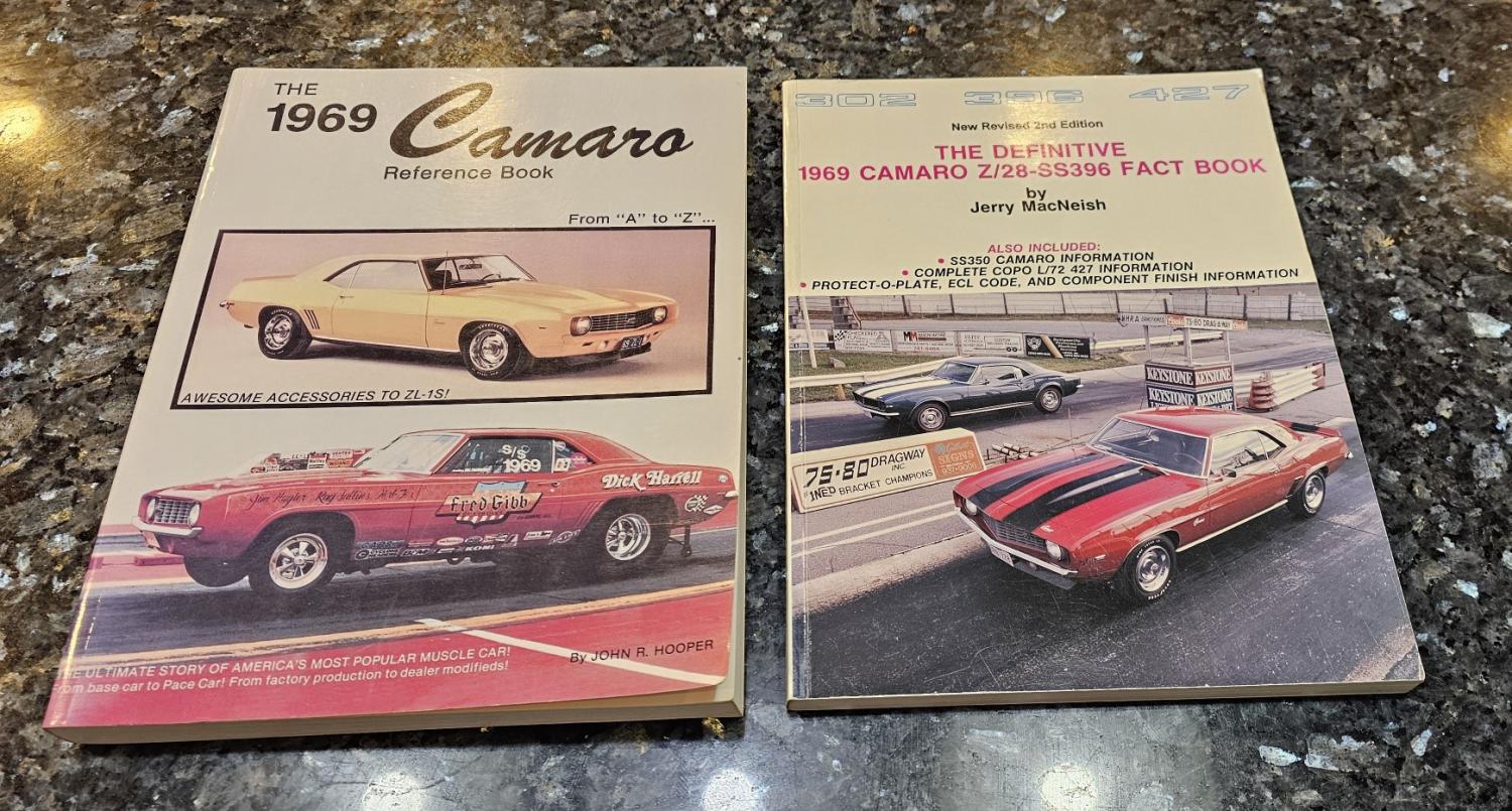Definitive 1969 Camaro Z/28-SS 396 Fact Book 2nd Edition & 1969 Camaro Reference Book A-Z Books for sale.