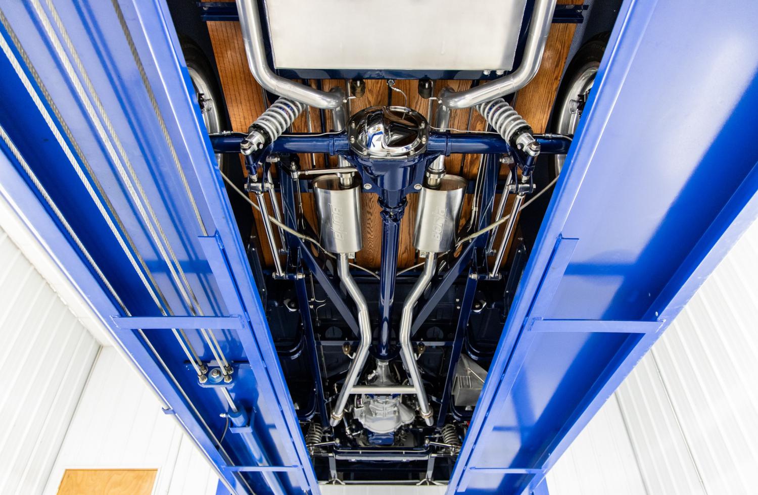 Known as “Blue Shadow”, this 1956 Ford F-100 custom pickup is equipped with a Ford Lighting 5.8L V8 with Inglese 8-stack fuel injection, Ford Performance T-5 manual transmission and modified chassis. As the original VIN number indicates, this example was built at the Chicago, IL factory as an F-100 model with a 238 V8. It was built by Bob Pierce of BP Customs and Rods located in Connecticut. It earned the “Builders Choice Award” and “Designers Pick” at the Goodguys East Coast Nationals. The two awards are included with the sale. Since completion it's only been driven 115 miles as it was trailered to most shows and events. Everything on the truck was restored or replaced to high show-quality standards. The body is extremely straight with excellent panel fitment. The customized tilt forward hood and doors open very nicely. It was refinished in Volkswagen Shadow Blue with DuPont ChromaBase products. The paint has been detailed to a brilliant shine and ceramic coated with Gtechniq Serum Ultra. The front windshield, side vents, side windows and rear window was replaced with new Hehr tinted glass. It's equipped with modern headlights, LED tail lights and LED third brake light fabricated into the rear cab. It's been outfitted with Billet Specialties Heritage 20” polished wheels and Falken tires. The smooth bed inner panels were painted and enhanced with stainless hardware, Oak floors and stainless slats. The Ford embossed tail gate is supported with chrome hinges and latches. The interior dash was slightly modified by incorporating Vintage Air Conditioning controls and side vents. The cabin was painted body color to match the exterior. The headliner and sun visors were upholstered in tan cloth. The custom kick panels, door panels and bench seat were upholstered in soft brown leather. The floors are covered with custom brown carpeting and molded floor mats. Some of the interior custom features include LED lighting, rear view mirror, Classic Instruments Retro black gauges, Flaming River tilt steering column with billet levers, Flaming River Banjo steering wheel, Specialty power windows, power door locks, power seat, billet door handles, chrome shifter with matching leather boot, seat belts and Custom Autosound Secertaudio SST with remote control that flips down from under the dash. The painted engine compartment is highly detailed throughout. The smoothed firewall showcases a Ford embossed logo and the inner fenders are covered with aluminum panels. The truck is powered by a rebuilt Ford Lighting 5.8L 351 W V8 that runs excellent. The engine was upgraded with a roller cam and Ford Racing GT40 aluminum heads. The engine is equipped with an Inglese Intake and 8-stack fuel injection system with Fast Fuel management. The engine is dressed with high-quality Profile aluminum valve covers and Billet Specialties Tru-Trac pulley system. Some other upgrades include a Ford Racing starter, MSD ignition system, Billet Specialties alternator and power steering reservoir. The engine is cooled by a Griffith aluminum radiator with a SPAL electric fan. The engine breathes through ceramic coated headers and a ceramic coated dual exhaust system with polished Borla mufflers. The engine is coupled to a Ford Performance Super Duty T-5 manual transmission with hydraulic clutch. The power is transferred to the Ford Mustang GT POSI rear end with 3.27 gears. The undercarriage is highly detailed throughout. The original chassis was modified for additional strength and to accommodate the upgraded parts. It's equipped with a Heidts Mustang IFS front end with power rack and pinion steering and a 4-link rear end with QA1 coil overs. The Wilwood braking system consists of 6-pistion red calipers with 14” drilled rotors on the front and red calipers with 12.88 drilled rotors on the rear. This truck has been completely serviced and detailed which is documented with an invoice that's included. From the MS CLASSIC CARS Collection.