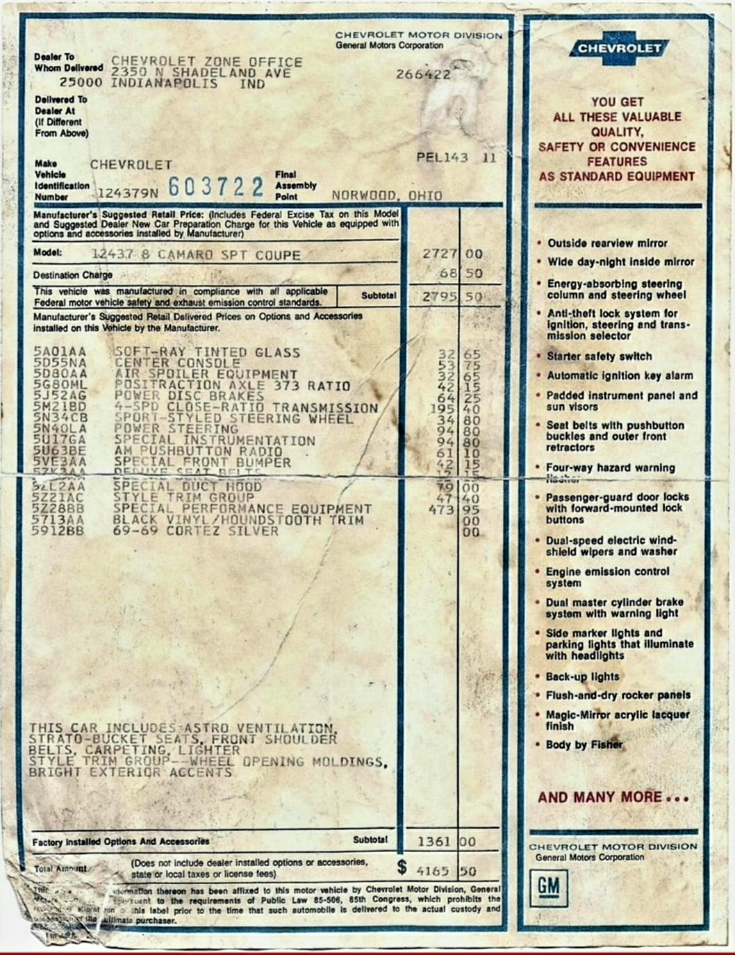 And VOLO vid here at the 7:44 mark.https://www.volocars.com/auto-sales/...camaro-z-28-rs