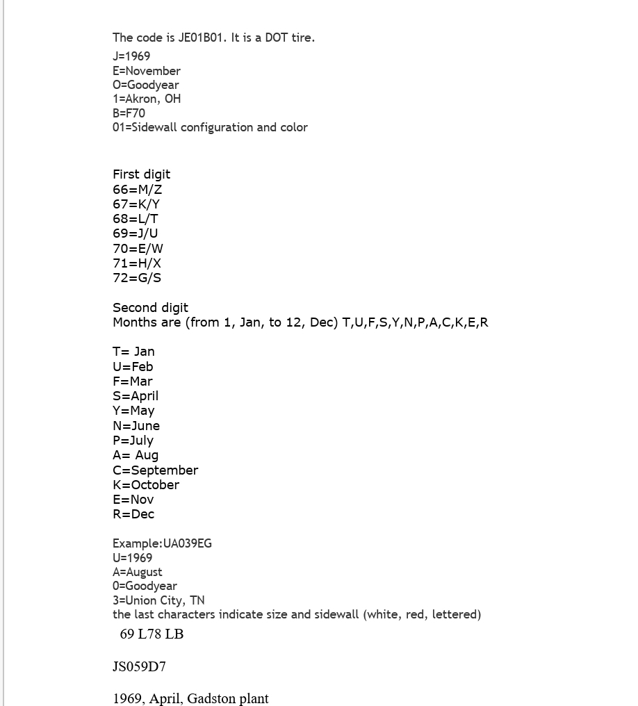 I need help, decoding a tire date. The code is UY05023. Also, i;m looking for assembly line 69 tires. F-70 14. raised white letter tires. Thanks BBBenny.