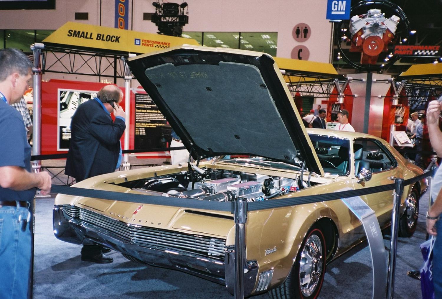 You can see the bailing wire holding up the tailpipes. Look closely. If it wasn't for the redlines it'd almost be another ho-hum '66 Toronado. Until you hit the go-pedal. I'll bet it'd be fun to stab-and-steer this thing with the fronts billowing tire smoke. Kinda' like the Hurst Hairy Olds or the Tommy Ivo Showboat. |