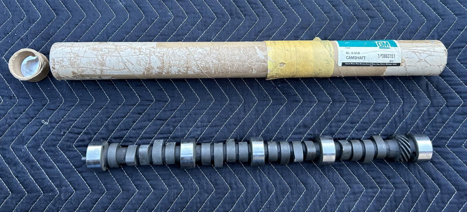 Super nice NOS L-79 cam with the original parts tag from Rampy Chevrolet in Ann Arbor, MI. Tube was opened to show immaculate condition. Why take chances on a new cam with questionable geometry and metallurgy? $400 shipped anywhere in the lower 48.