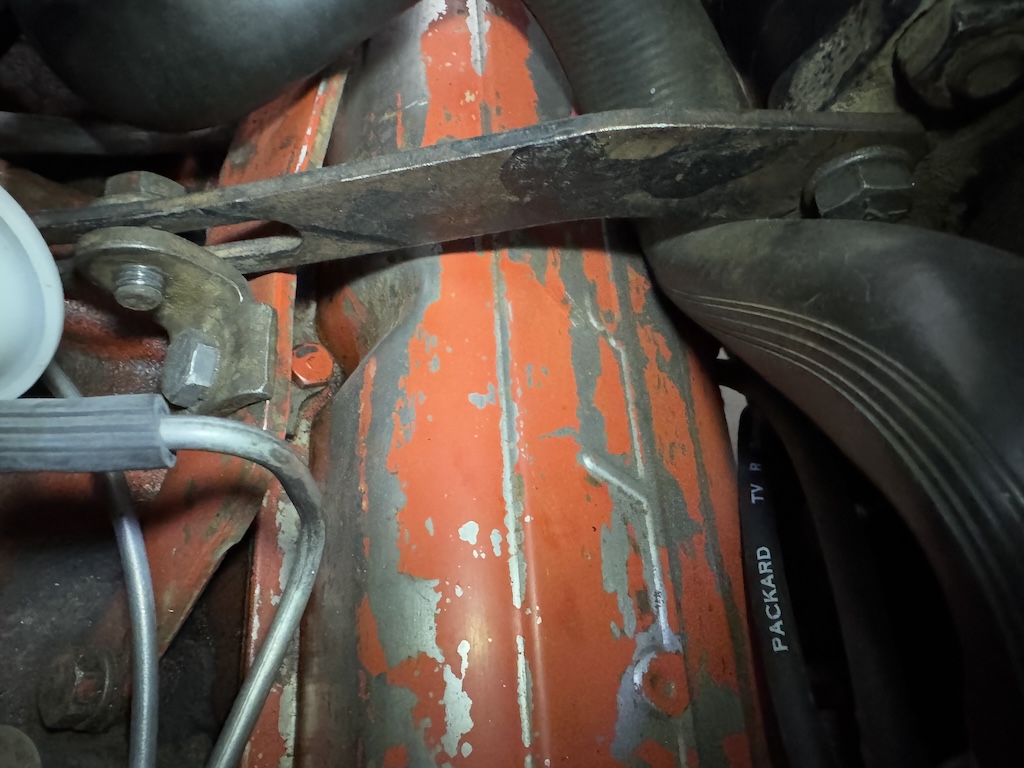 Originally 307 PG car. Now 350 4L60E. Two issues. I am missing one bracket. It is stamped steel and runs from the small bracket on the intake to a 3/8 threaded hole on the back of the compressor. See first pic. I have a bunch of stamped steel brackets in my metal pile, but doubt I have one that will fit without modifying it. All my other brackets are correct, so would rather have an original. Can anyone confirm that the one I need is the one I have pictured below (second pic)? Secondly: I am not sure that the exhaust manifolds I have are original to the car; but believe they are. They were in the bed with all the other spare parts when I bought it. I didn’t look at the casting numbers as it is not a “numbers” car. When I installed the compressor, I could not get the lower bracket mounted without using spacers, 3/4 in back and 5/16 in front. I don’t know that it matters, as the belt lines up just fine, and the compressor pivots fine for adjustment. I am guessing originally it did not have spacers. Can anyone confirm? Guessing that 68 Camaro V8 with air would be the same, at least for an auto trans car. And yes, I know I have the "wrong" valve cover on it. Like I said, it isn't a "numbers" car, and this is what I had on hand. There is a big block 68 in this thread. https://www.yenko.net/forum/showthread.php?t=180849 You can see the bracket installed, although I suspect it is slightly different on a BBC.