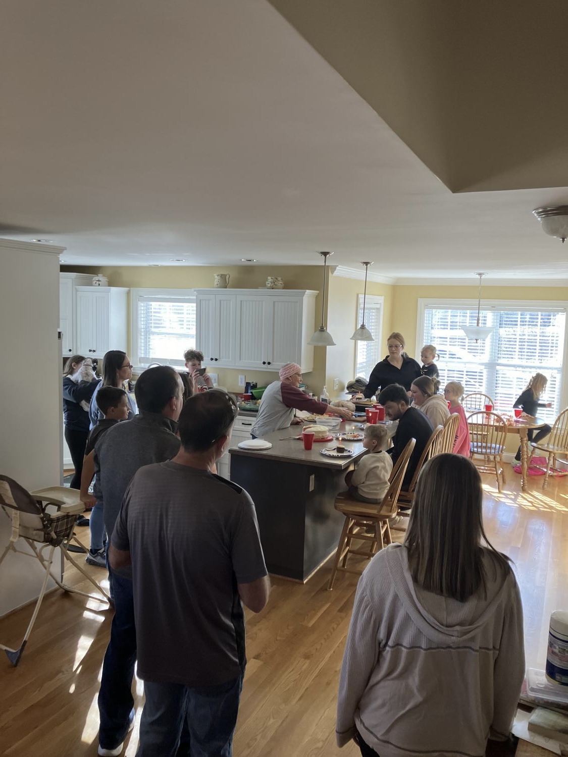 Today all 20 of us gathered at my place ( a few outside shooting basketball) to celebrate three birthdays and a baby shower for # twenty. # twenty is our first great grandchild baby Sutton due mid May. I am a Blessed man through the grace of God Almighty.