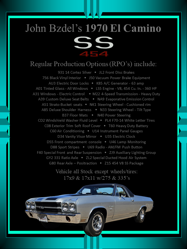 Currently owned: 1970 El Camino SS 454/M22 LS-5 1988 Monte Carlo SS LS7/T56 (700+ NA RWHP!) 2011 Corvette Z06 all stock Previous owner of: 1970 Chevelle SS 454/M22 w/XCH crate LS-7 1970 El Camino SS 454/M22 LS-6 1970 Camaro Z-28/M22 |