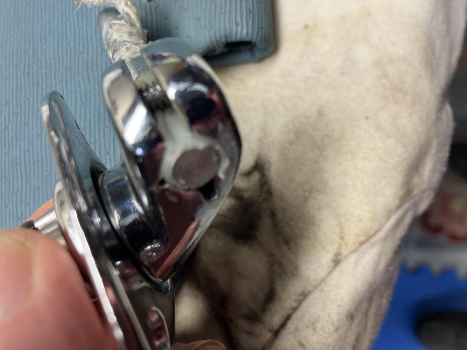 I see the sleeve thing inside the visor , I had thought about squeezing it somehow without damaging the visor material. Channel locks with rags between the jaws might work.