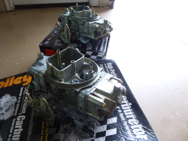 In the Holley boxes. A pair of NOS 4295 crossram carburetors for a 1969 Camaro. These are undated carbs. I don't know why but the metering blocks are not the correct ones for the earlier 4295 carbs. These are in very nice condition.